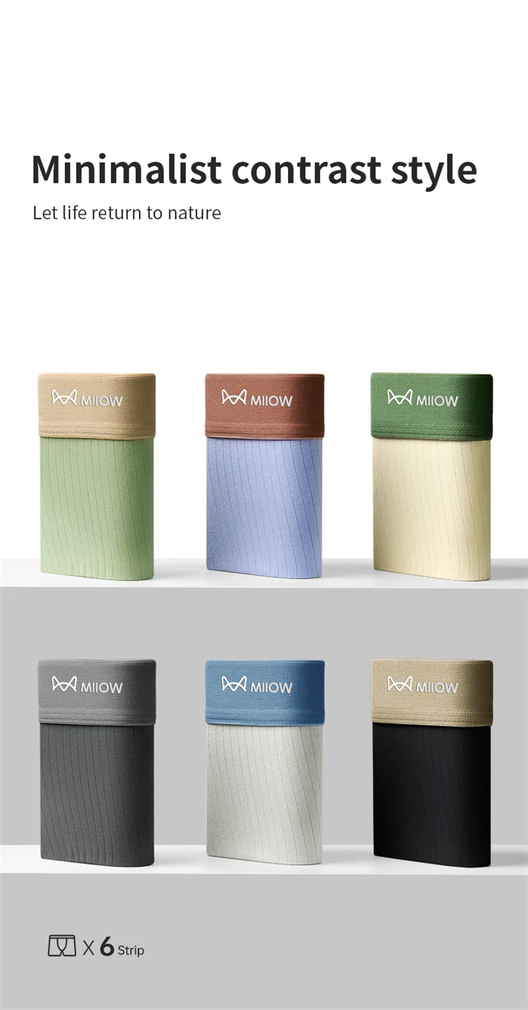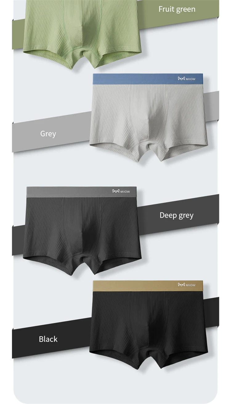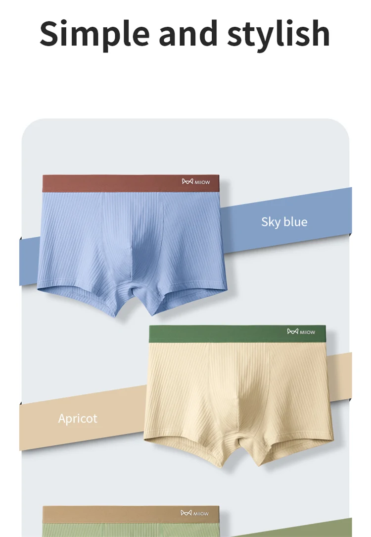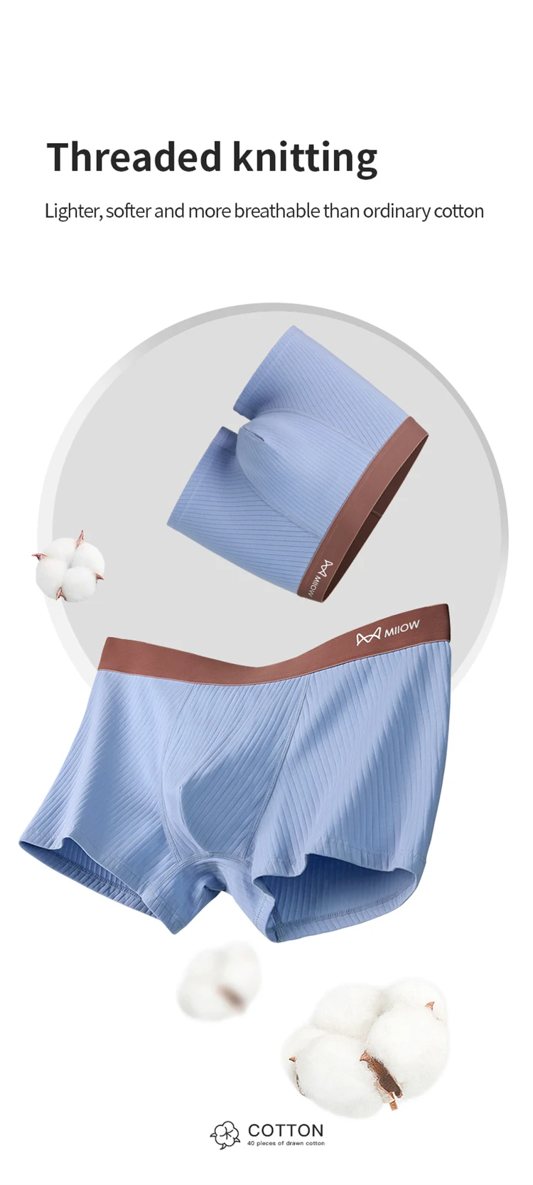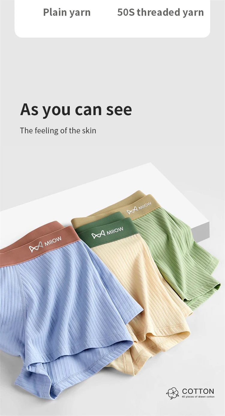 MiiOW 3pcs 40 Draw-on Cotton Men’s Boxershorts Light Soft Comfortable Underwear Male 3A Antibacterial Man Underpants Boxer Short