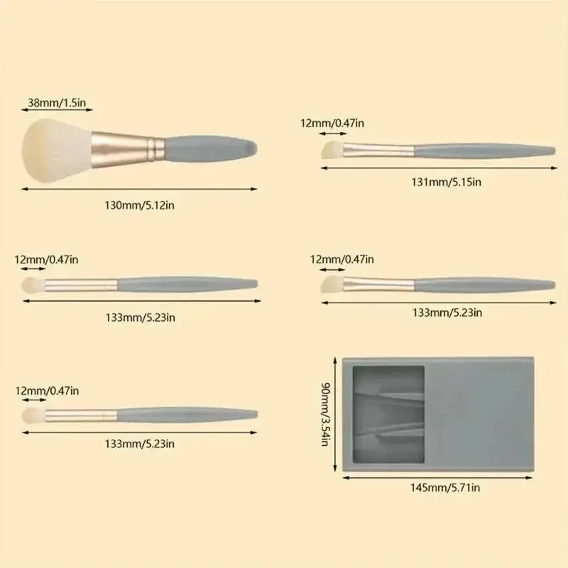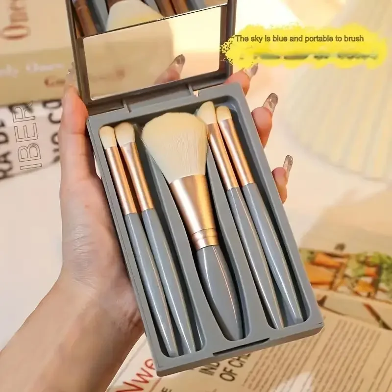 5PCS Mini Mirror Makeup Brushes Set Soft Fluffy for Cosmetics Foundation Powder Eyeshadow Kabuki Blending Makeup Brush Beauty ToolPackage including:Please allow 0-1 inch error due to manual measurement. Thanks for your understanding.Notes:05 Big Blush Blending Brush04 Lip brush03 small eyeshadow brush02 Eyeshadow Brush01 Makeup powder brushPackage Included:Color: PinkBrush handle material: ABSBrush material: man-made fiberSpecifications:Its a good gift for your lover,friends and coworkersIts special design will make you look unique.It is an important beauty essential for youThe makeup brush is easy to carry and useBrand new and high quality5pcs Mini Portable Makeup Brush SetLoose Powder Brush, Eye Shadow Brush, Detail Brush, Nose Shadow Brush, Smudge BrushNo one is left unused to create a delicate make-up lookFully functional, meet your daily needsConvenient and compact for travellingFuture:Five fully functional make-up brushes for a more delicate lookTravelling is more convenient, the storage box makes the makeup brushes more tidy, no need to worry about losing them.All in one box for a perfect make-up look.Specification:Colour: Pink, Blue, Skin Tone,Bean paste colourPlace of Origin: ChinaQuantity: 5pcsFunction: Help you create a delicate makeupWeight: 115gPackage Includes:5pcs make-up brushes (with case)Attention:All measurements are manual, there may be 1-3cm error, please understand!