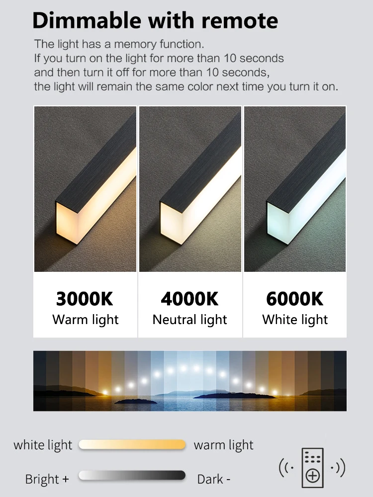 Color Tempeature: Warm White(2700K-3500K) No remote,Neutral light(4000K-4500K) No remote,Cool White(6000K-6500K) No remote,Dimmable with remote