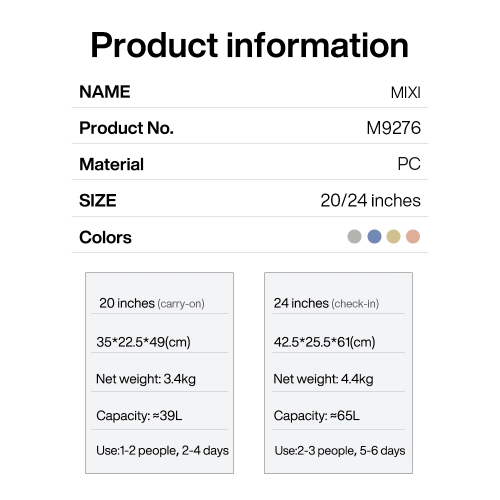 - Luggage wheels: Mute spinner wheels