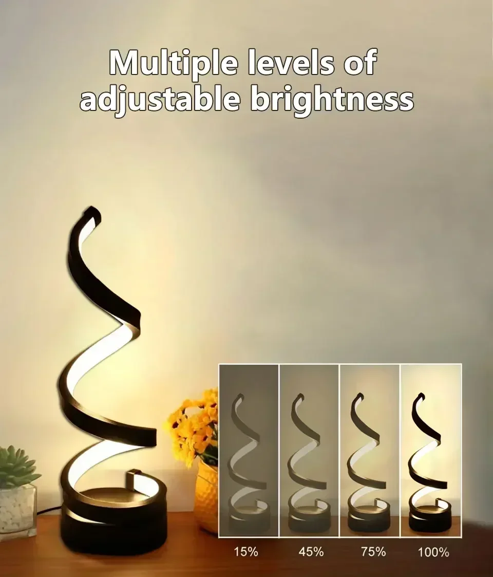 1. Minimalist line design: This dimmable desk lamp is a beautiful artistic decoration. The spiral curve winds upwards, creating a harmonious and elegant atmosphere for your home.