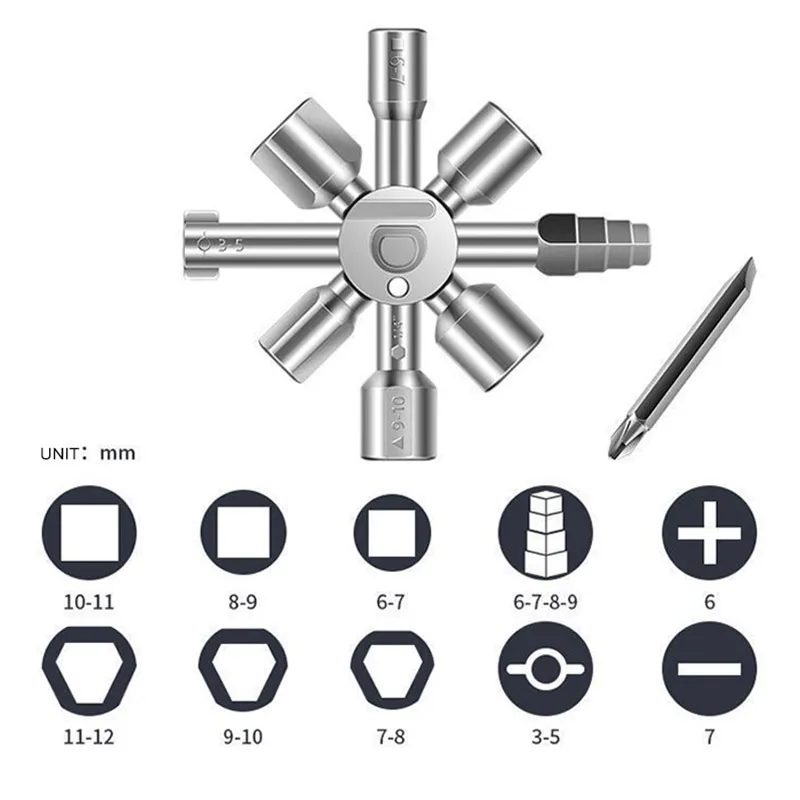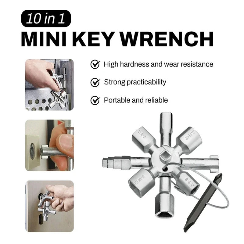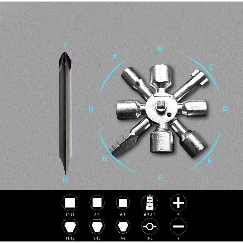 Multi-purpose Cross Switch Square Key Wrench 10 In 1 Universal Triangle Elevator Electrical Cupboard Box Train Wrench Tools