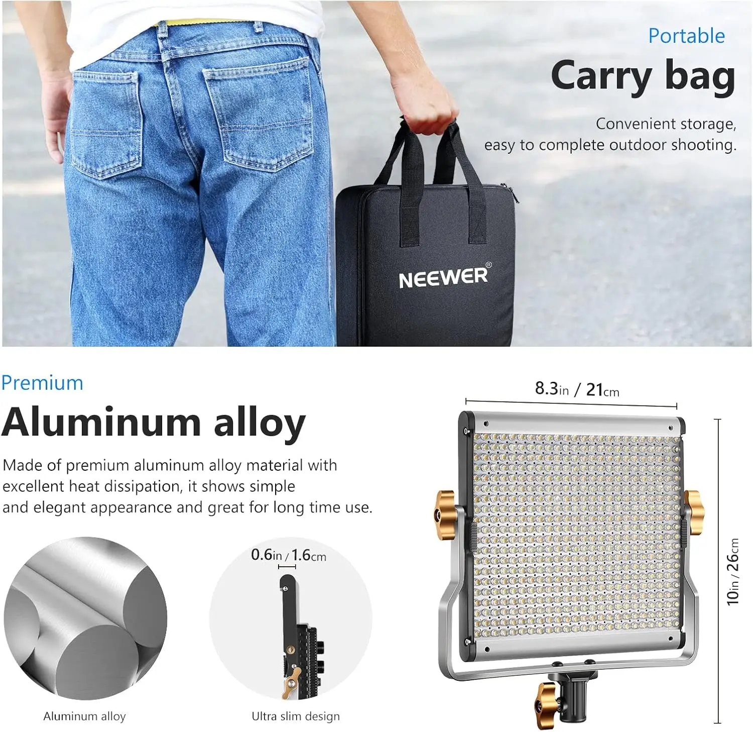 PREMIUM MATERIAL and MULTI-USE: Made of excellent quality aluminium alloy showing simple elegant appearance; Can be placed directly on the light stand, ground or desk, providing multiple shooting solutions, more convenient for your creation work; Comes with a carrying bag to store the light and accessories