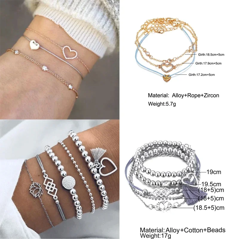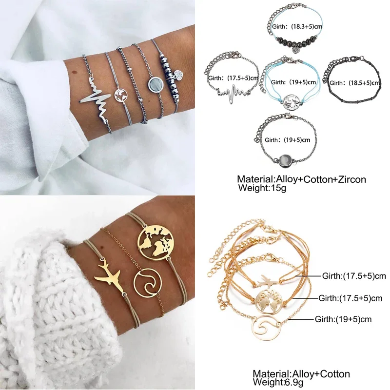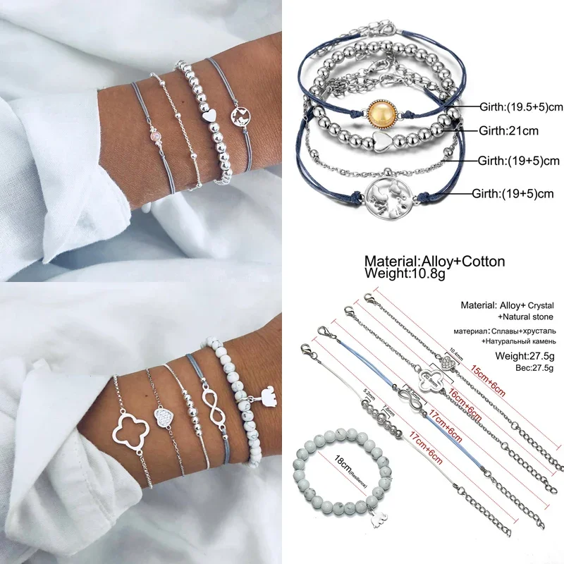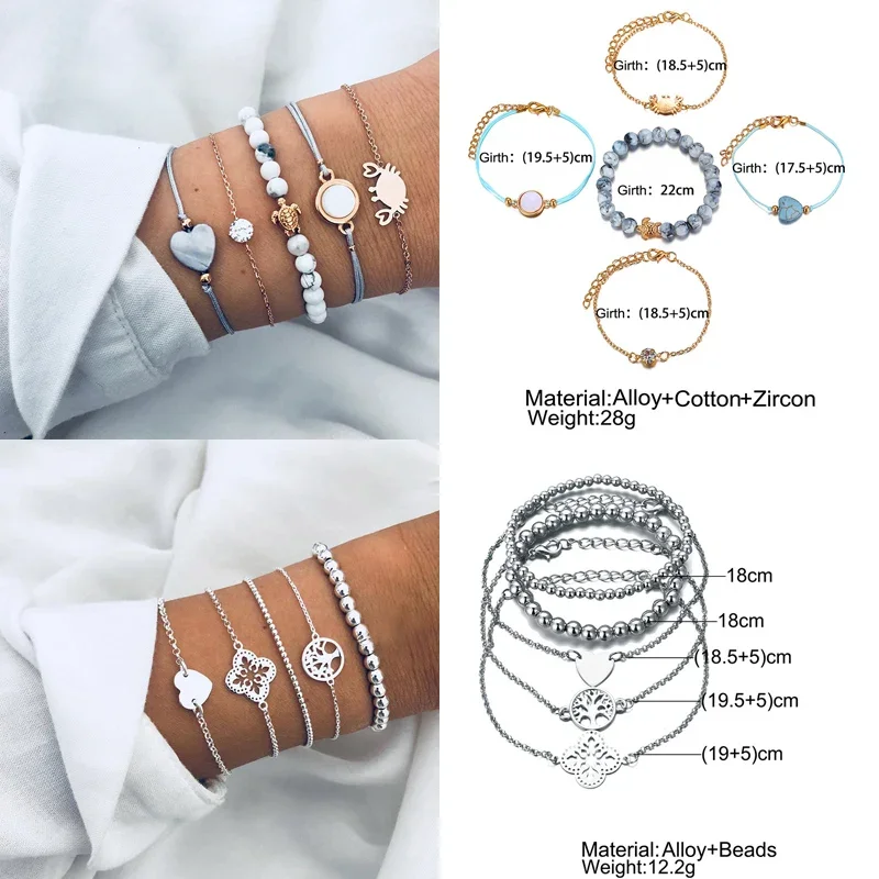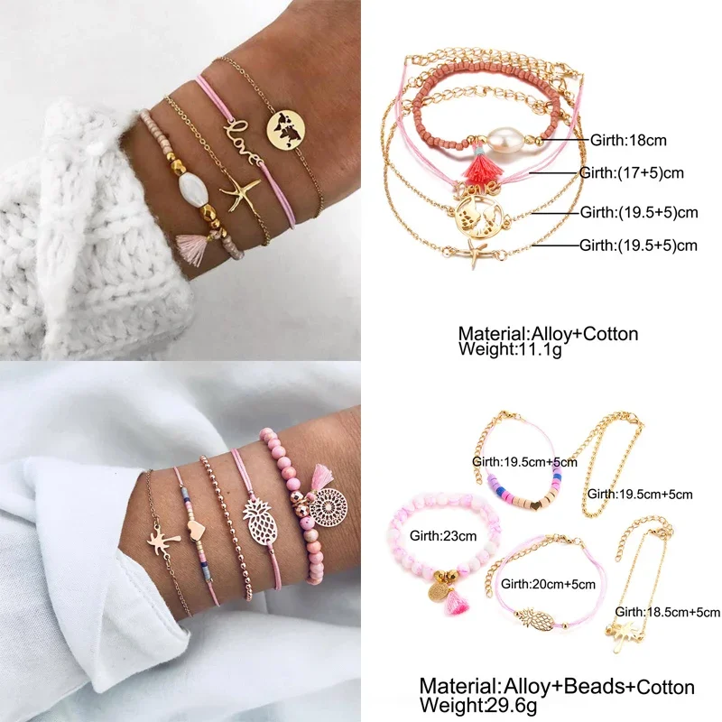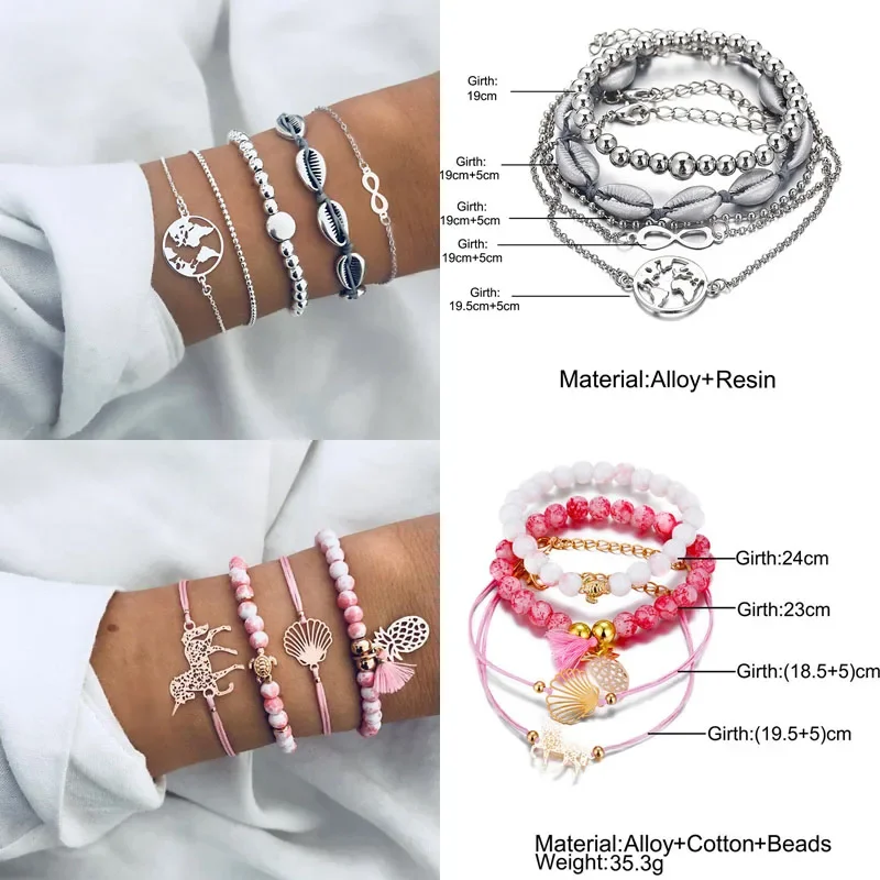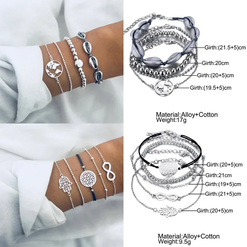New Design Vintage Women Boho Bracelets Set Moon Shell Heart Tortoise Charm Beads Chains Bangle For Female Bohemian Jewelry