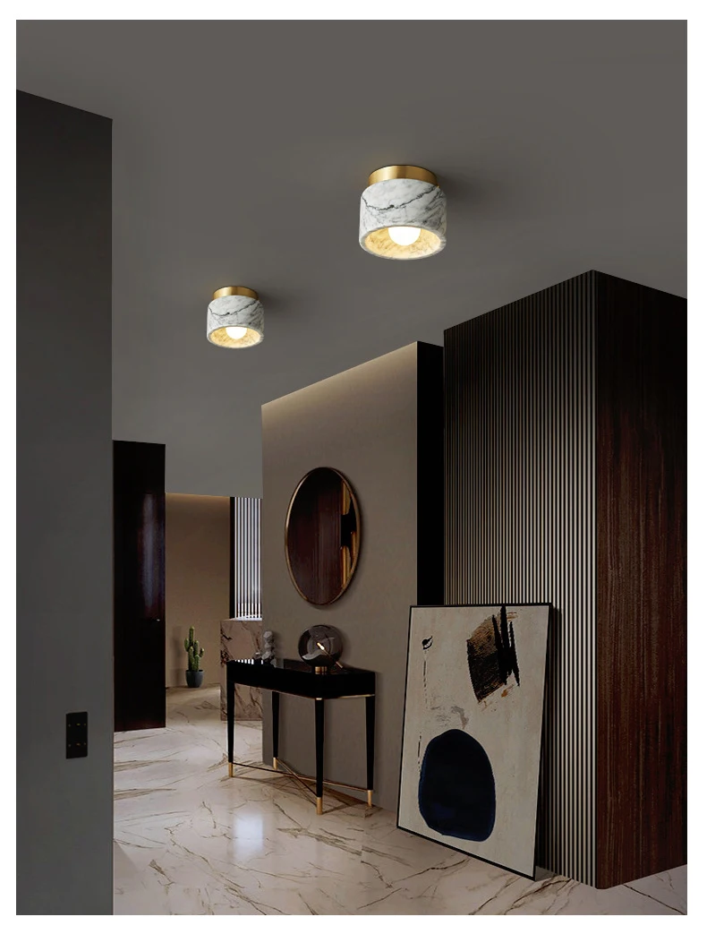 Nordic Marble Downlight Living Bedroom Room Decor Marble Ceiling Light Green White Stone Corridor Aisle Lamp