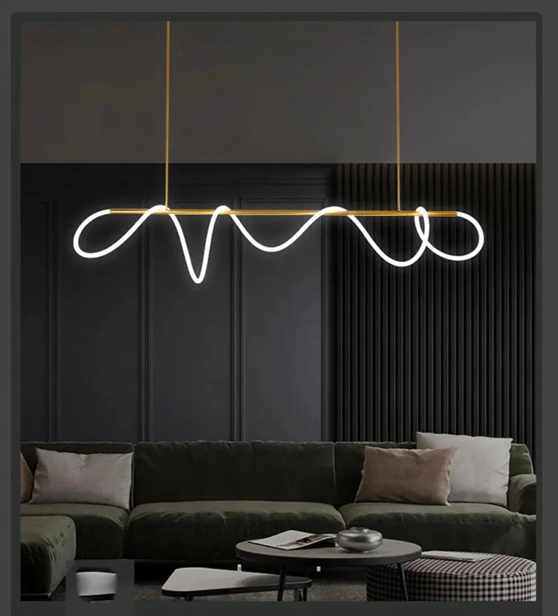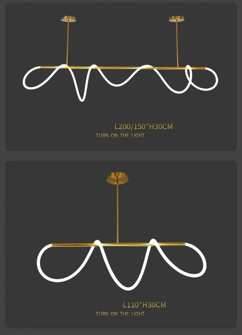 Nordic Simple Chandelier 360 Degree Golden Pendant Lamp Art Acrylic Flexible Tube LED Light Flexible Neon Light for Restaurant