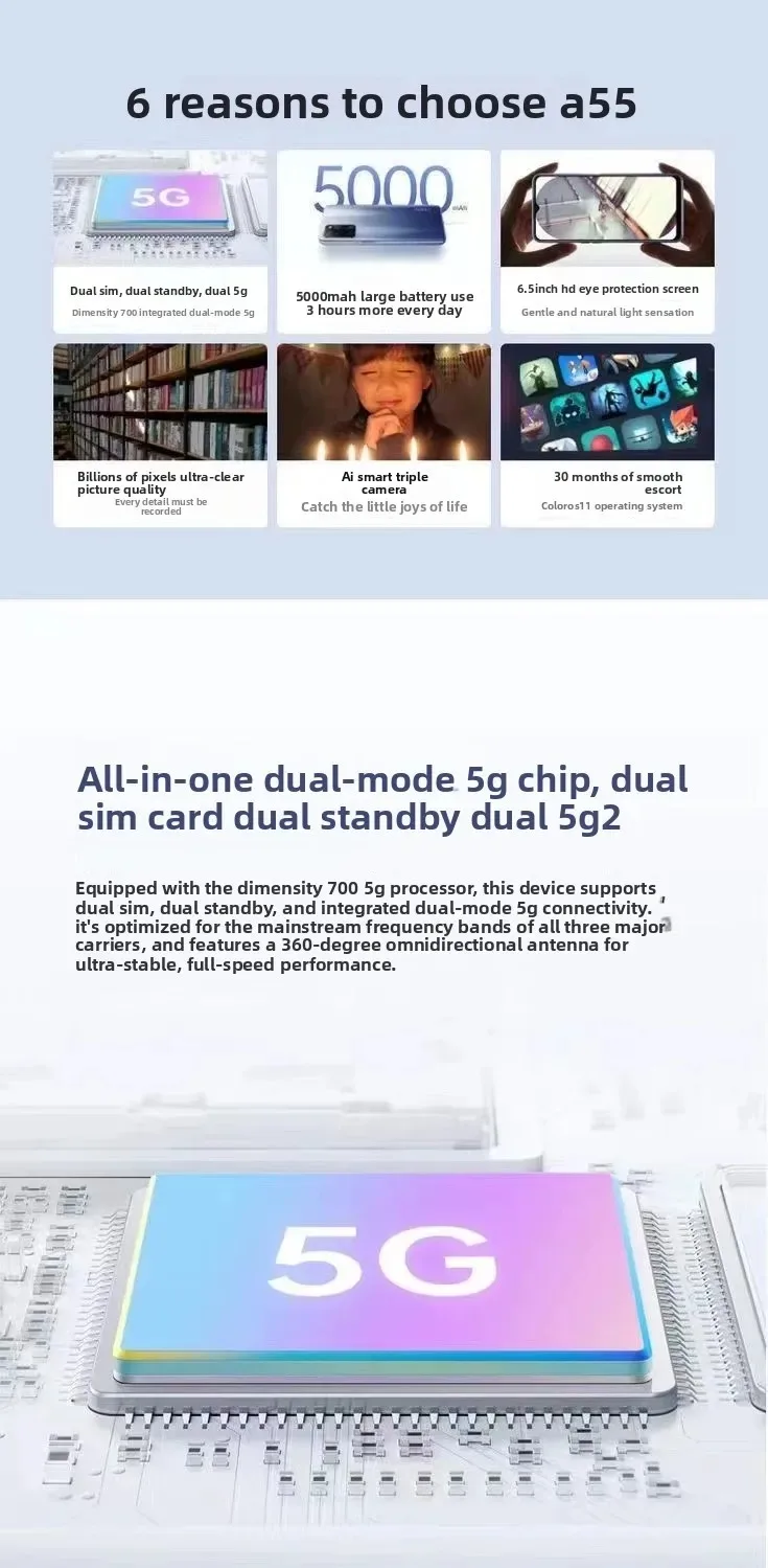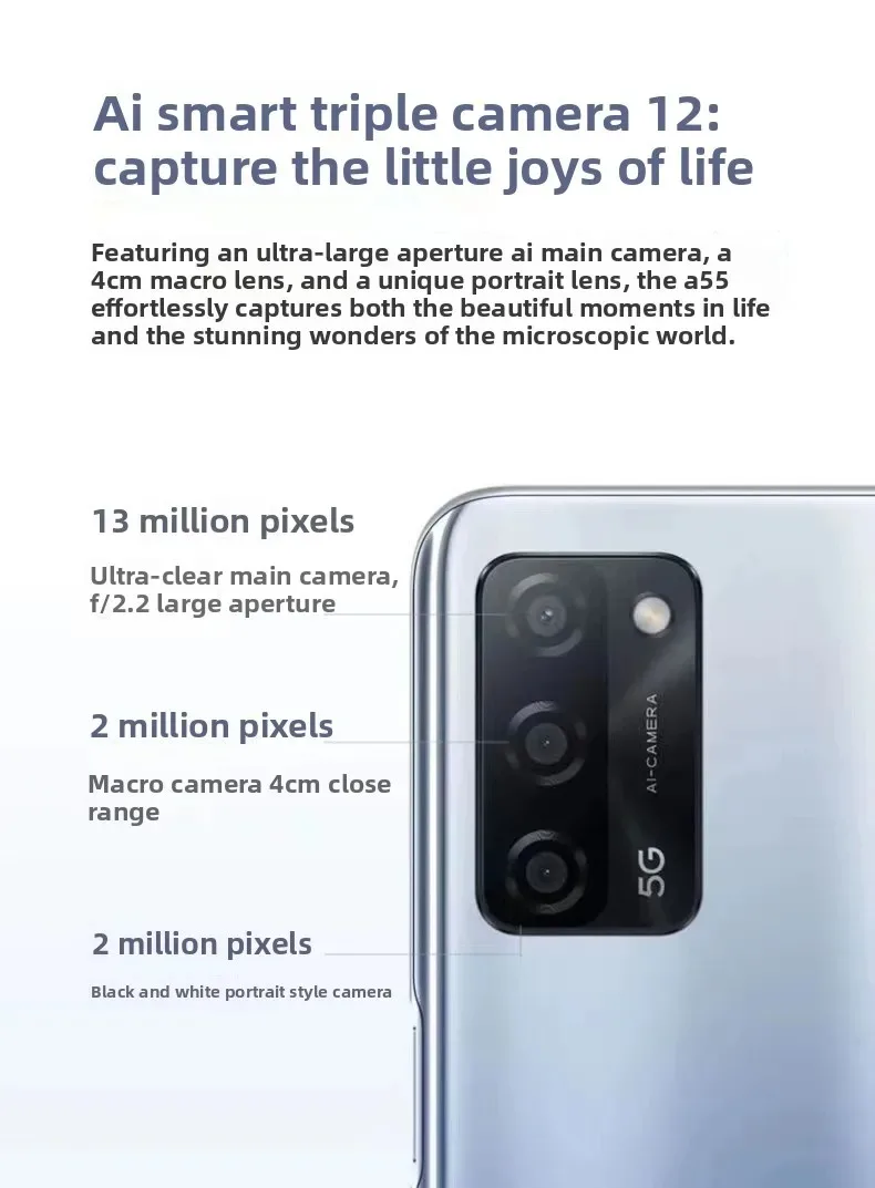 OPPO A55 4GB/6GB RAM 64GB/128GB ROM 50MP AI Camera 5000mAh Long Battery Life 4G LTE Dual SIM Phone Smartphone Global version