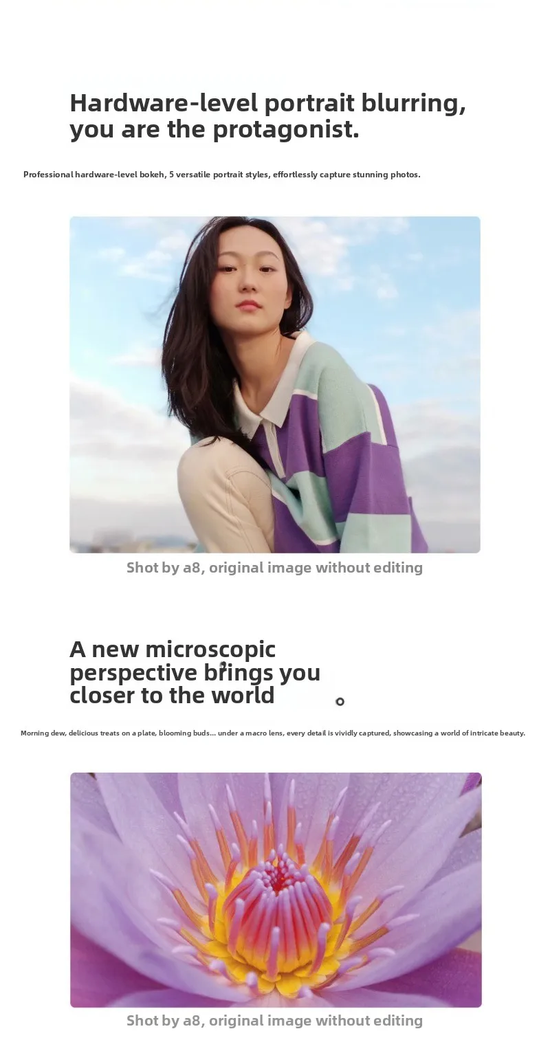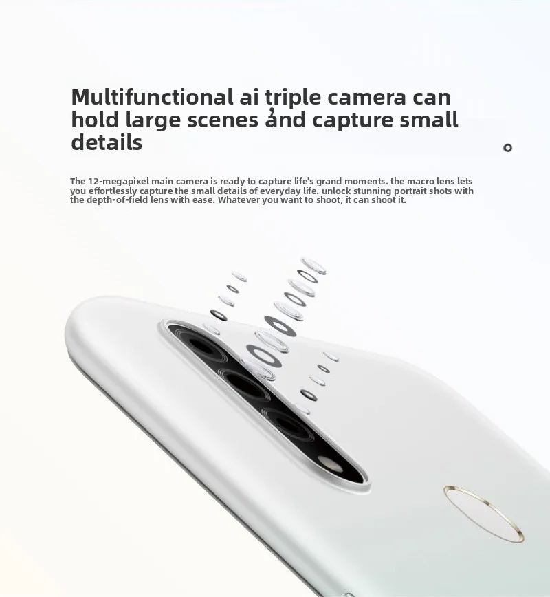 Camera: 12 million + 2 million + 2 million pixel triple rear camera, 8 million pixel front camera. The rear aperture is f1.8 (12-megapixel main camera) + f2.4 (2-megapixel depth-of-field lens) + f2.4 (2-megapixel macro lens), and the front aperture is f2.0. It supports professional mode, panorama, portrait, time-lapse photography and other photo modes, and both the front and rear cameras support 1080p 30 frames and 720p 30 frames video shooting.