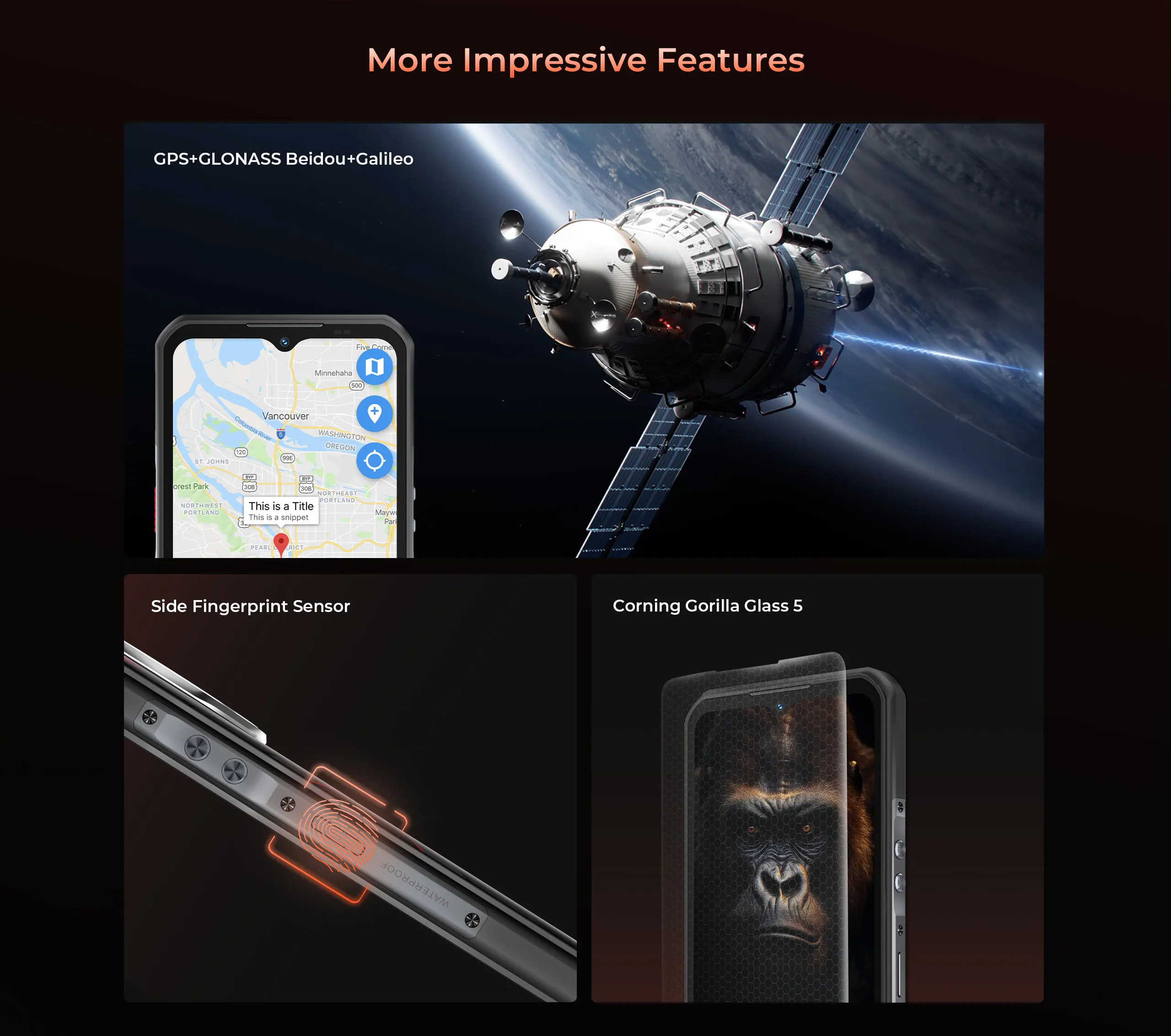 OUKITEL WP55 S 4G Rugged Phone MTK Helio G100 4G 6.6″ FHD+ 120Hz Display 64MP 11000mAh/33W 12GB+512GB Android 15 Cellphone NFC
