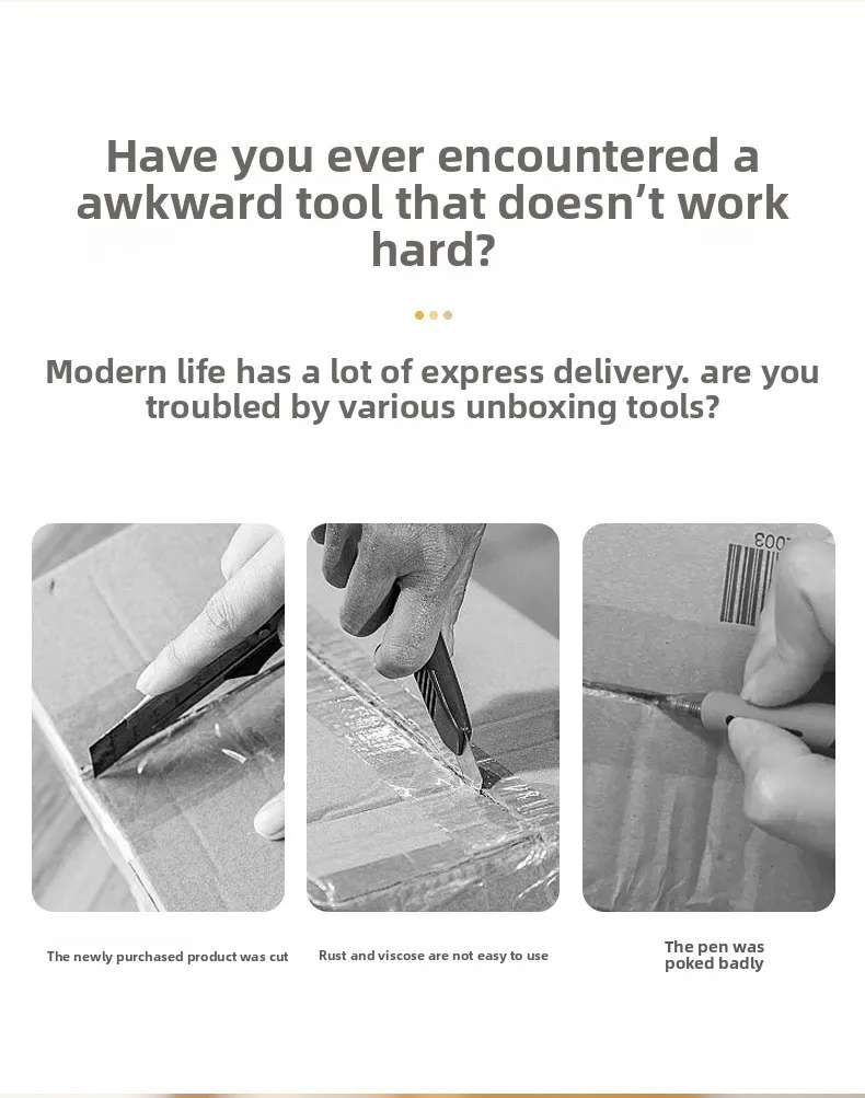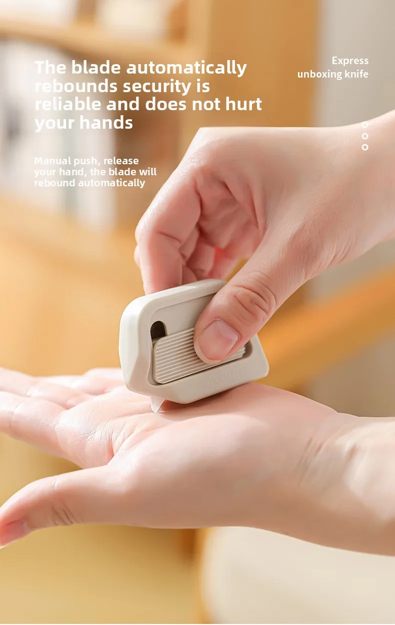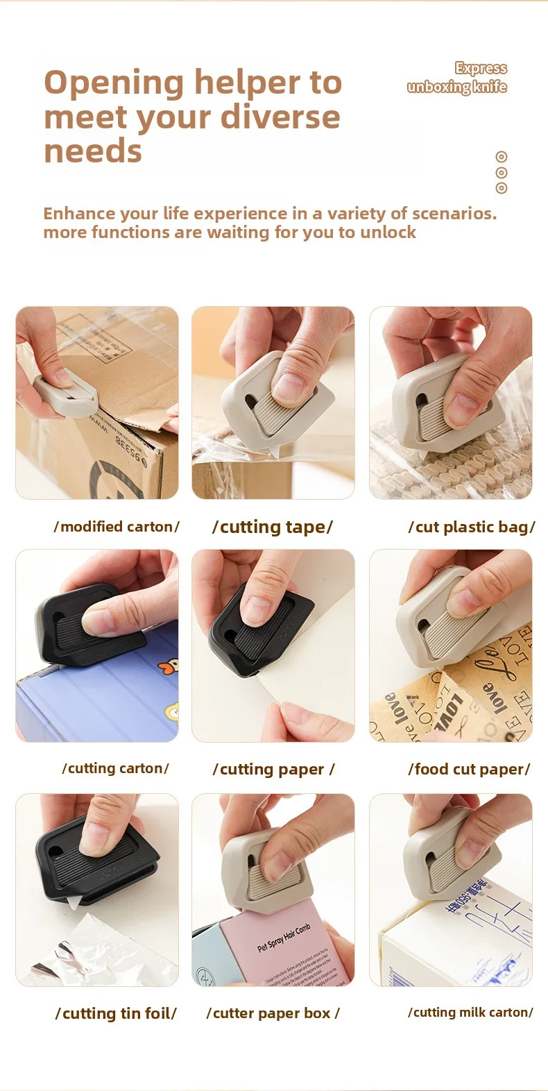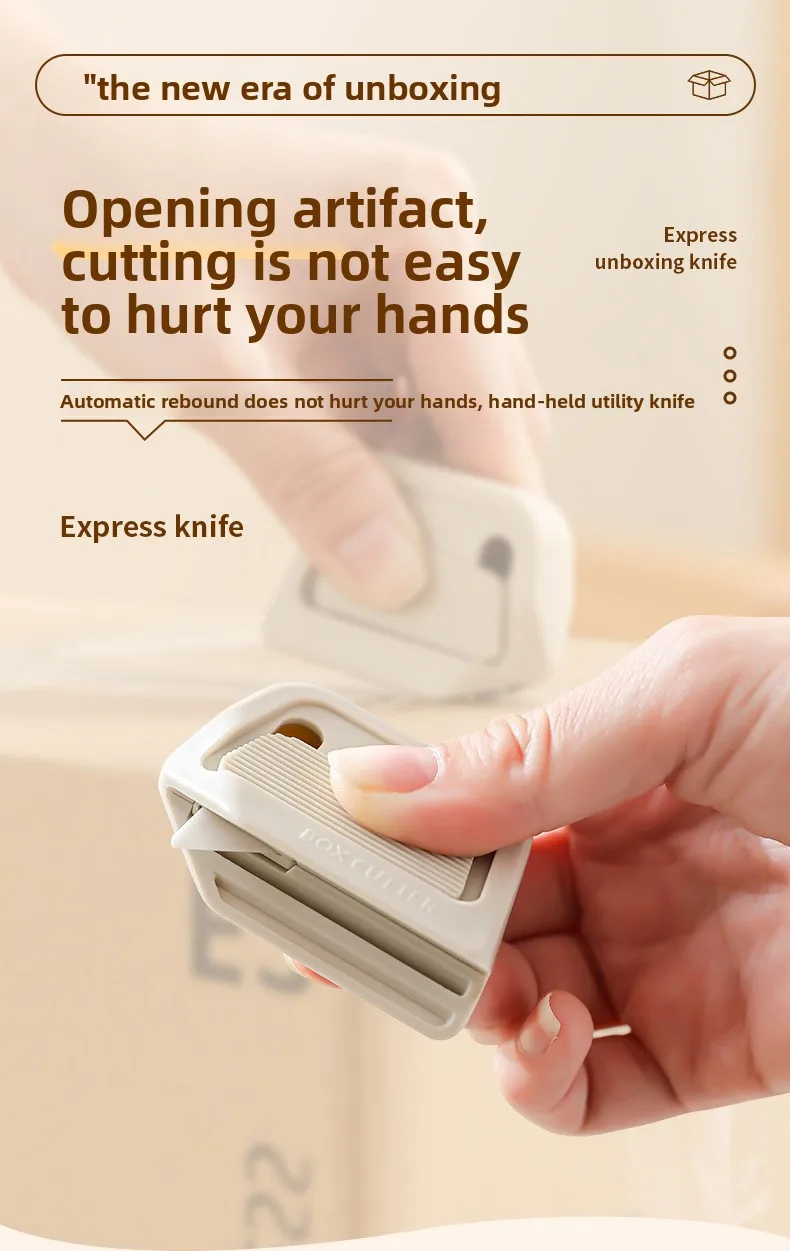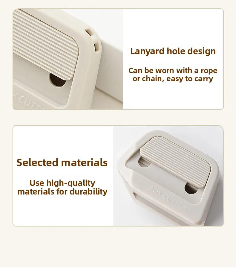 This art knife adopts an automatic rebound design. The blade is manually pushed and automatically rebounds after releasing the hand, which is safe, reliable and does not harm the hand. This art knife blade is made of ceramic material, which can easily cut various packaging materials such as tape, cardboard, plastic bags, etc. Moreover, the ceramic blade is not easy to rust and is durable. The blade design has a treatment groove, and when unpacking, the right angled groove fits the edge of the cardboard box. Pushing out the blade allows for smooth unpacking, ensuring that the built-in items are not damaged. The art knife has a built-in magnetic suction design, which can be easily attached to refrigerators or iron products, making it easy to store and not easily lost. The product shell is designed with hanging rope holes, which can be used to thread ropes and chains for easy carrying. When using the product, the blade is only exposed 7mm, making it safer to use.