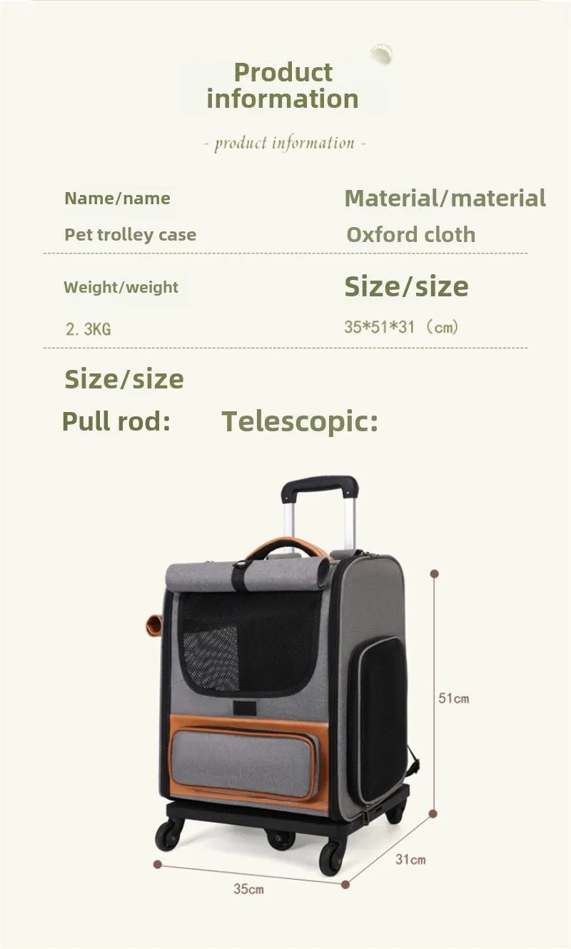 Be the first to review “Pet Trolley Box Breathable Foldable Cat Bag Large Capacity Travel Portable Wheel Trolley Bag Pet Carriers Products Accessories”