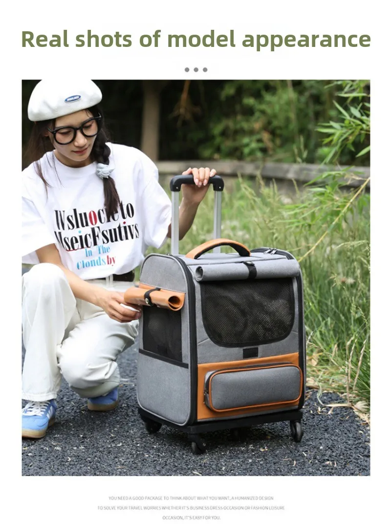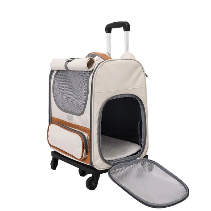 Pet Trolley Box Breathable Foldable Cat Bag Large Capacity Travel Portable Wheel Trolley Bag Pet Carriers Products Accessories