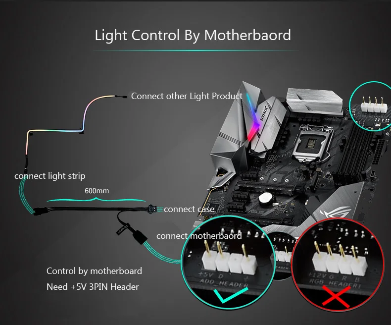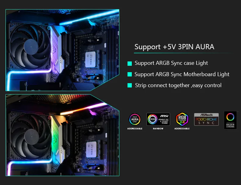 PHANTEKS Light Strip 5V Neon Computer Case Decoration LED Strip 5V ARGB 3PIN Lighting AURA SYNC 13mmx5.5mmx400mm Black / White
