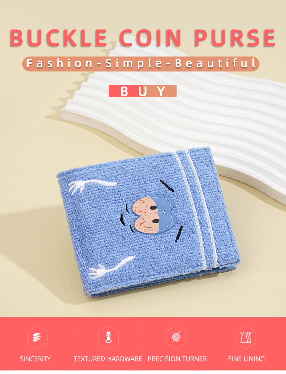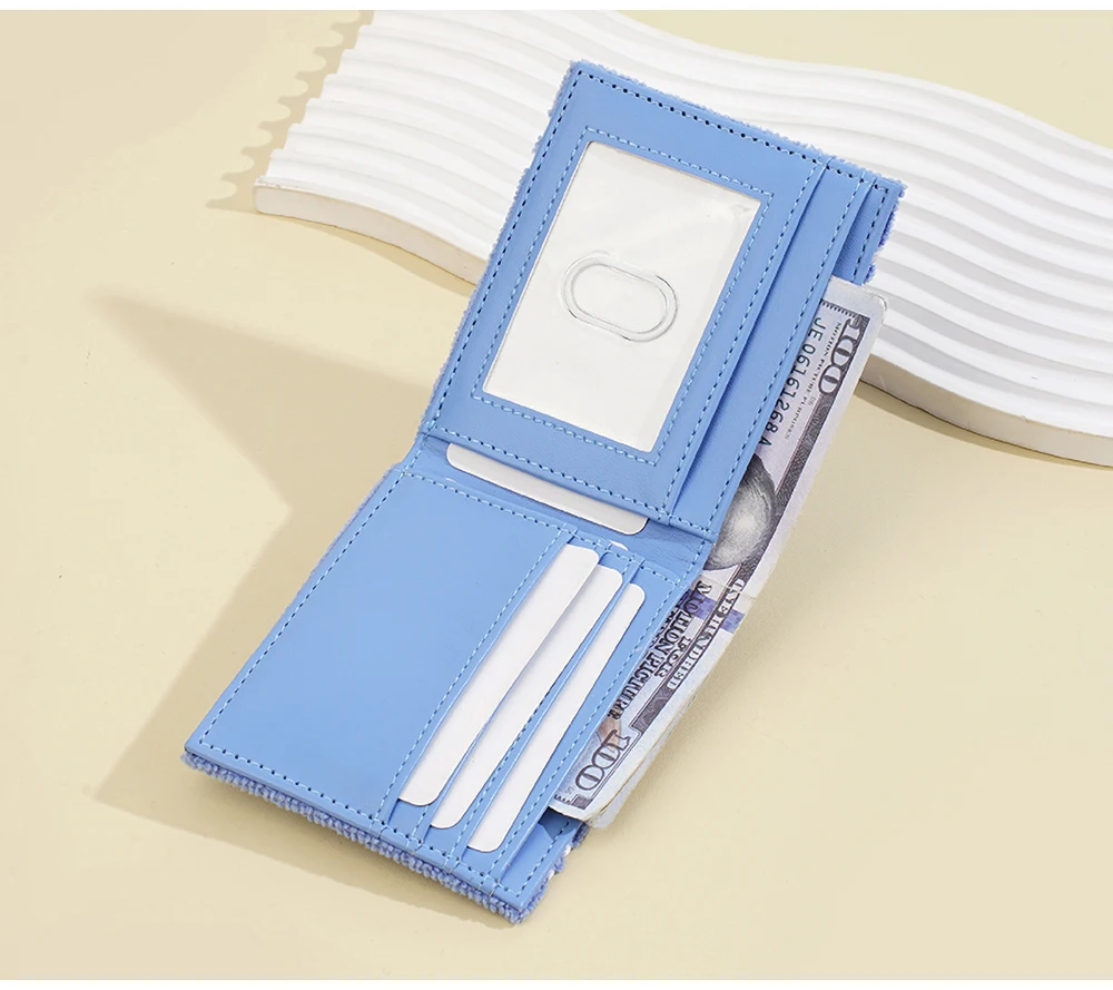 Plush Cartoon Wallet for Women Soft Fuzzy Surface PU Leather Coin Purse with Zip Closure Cute Casual Gift for Girls