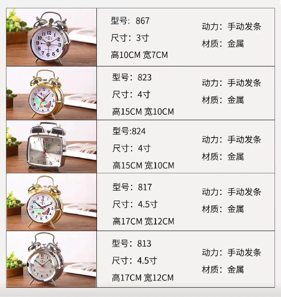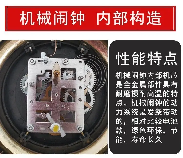 Features: mechanical winding power, pure copper movement, loud alarm, retro style