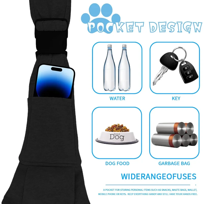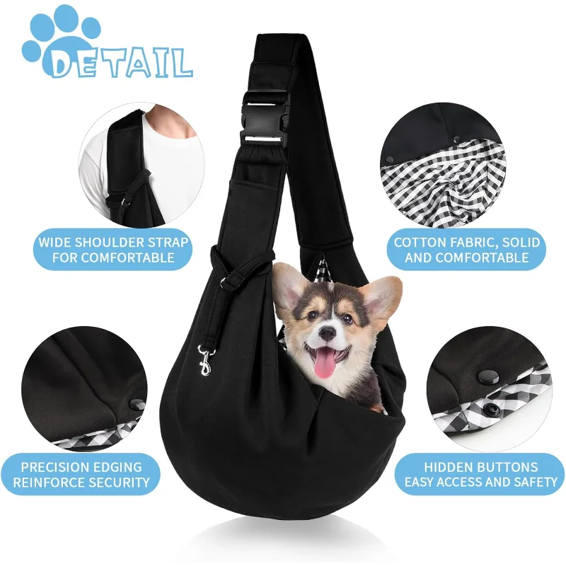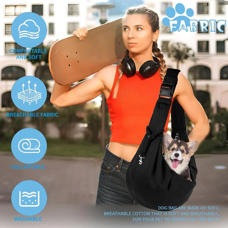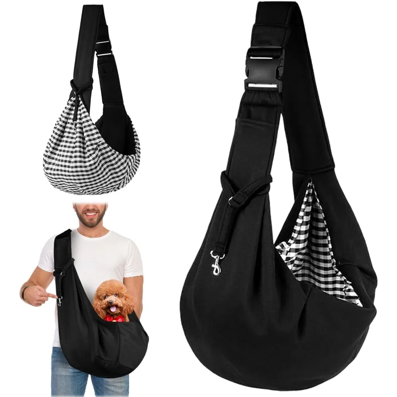 Reversible Dog Carrier Bag, Adjustable Shoulder Strap for Pets, Travel and Walking, Portable (Black)