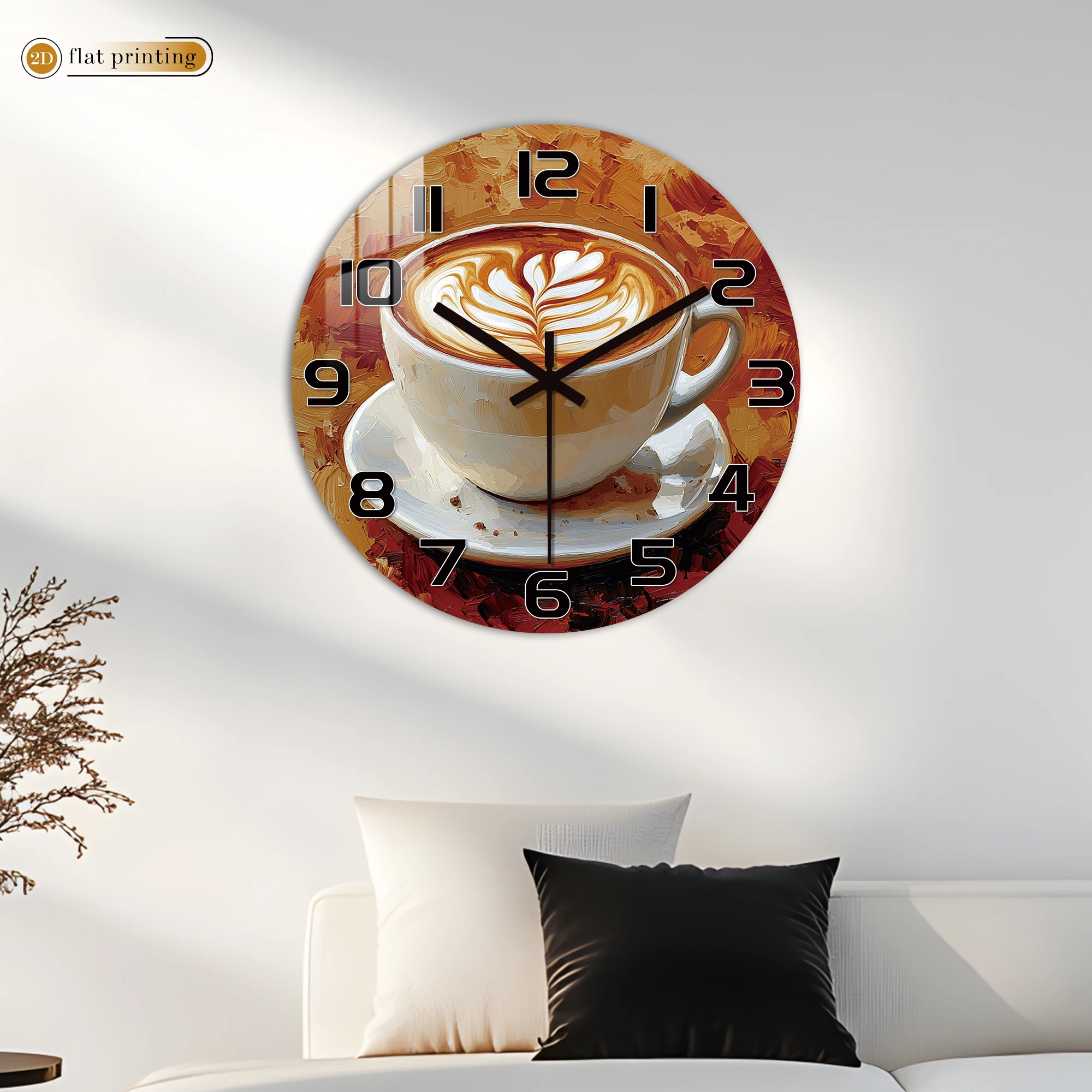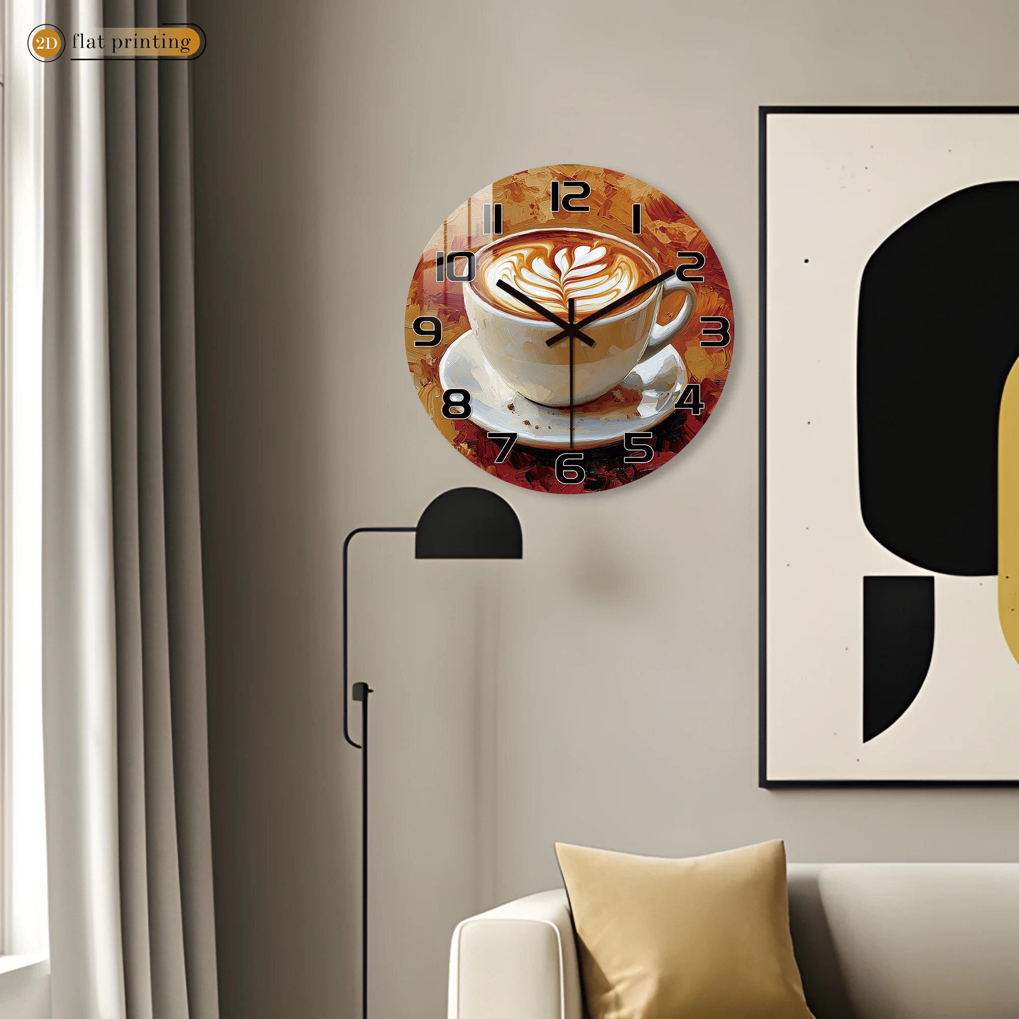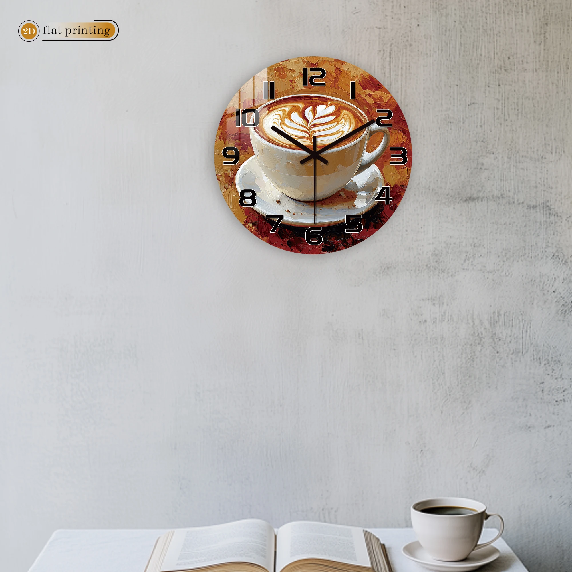 Rustic Coffee Cup Wall Clock, Oil Painting Style Cafe Decor, Vintage Latte Art Timepiece for Kitchen