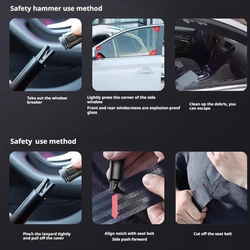 4.Hidden design, built-in stainless steel , can quickly cut seat belts in critical moments, U-shaped hidden edge design. Fingers can not go deep, safe not to hurt hands, beware of scratches.