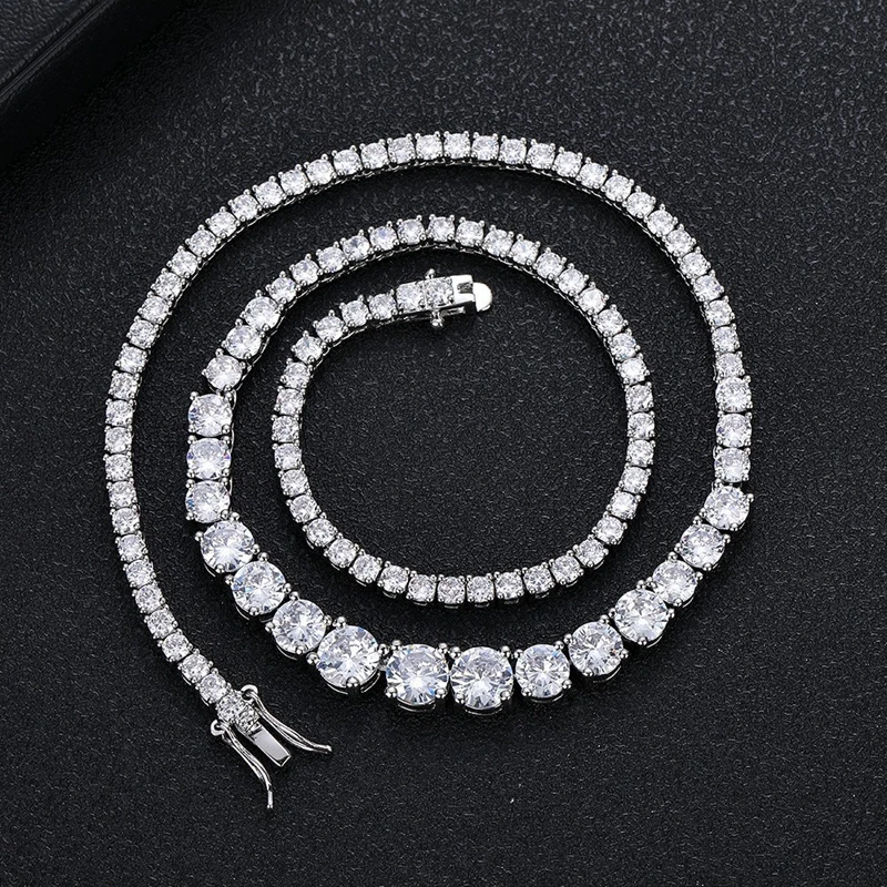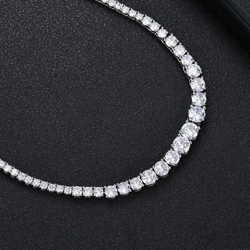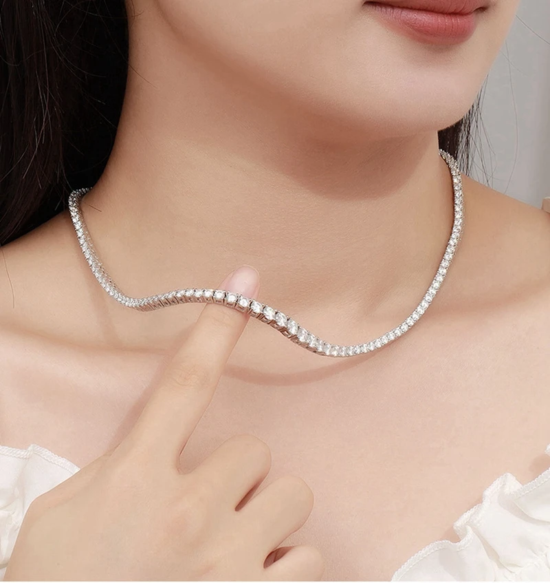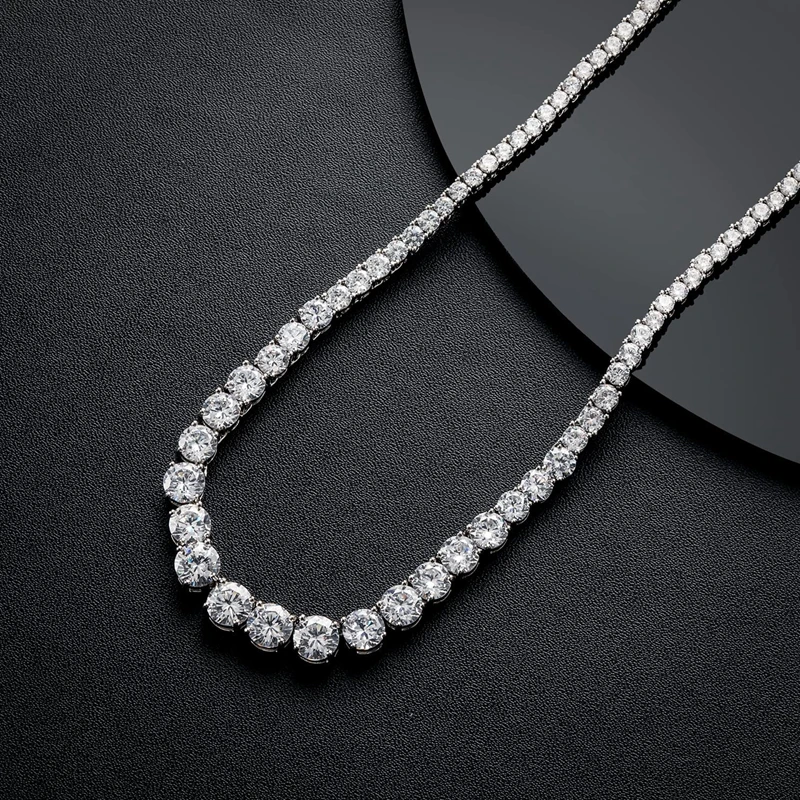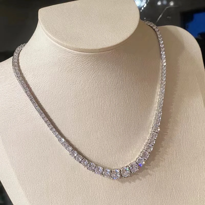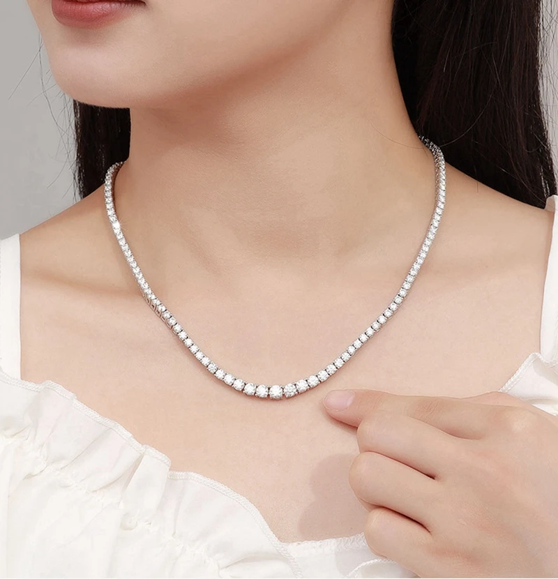 SEMNI 3mm–6.5mm Gradient Moissanite Diamond Tennis Necklace for Women Men 925 Sterling Silver Luxury Jewelry Sparkle Diamond