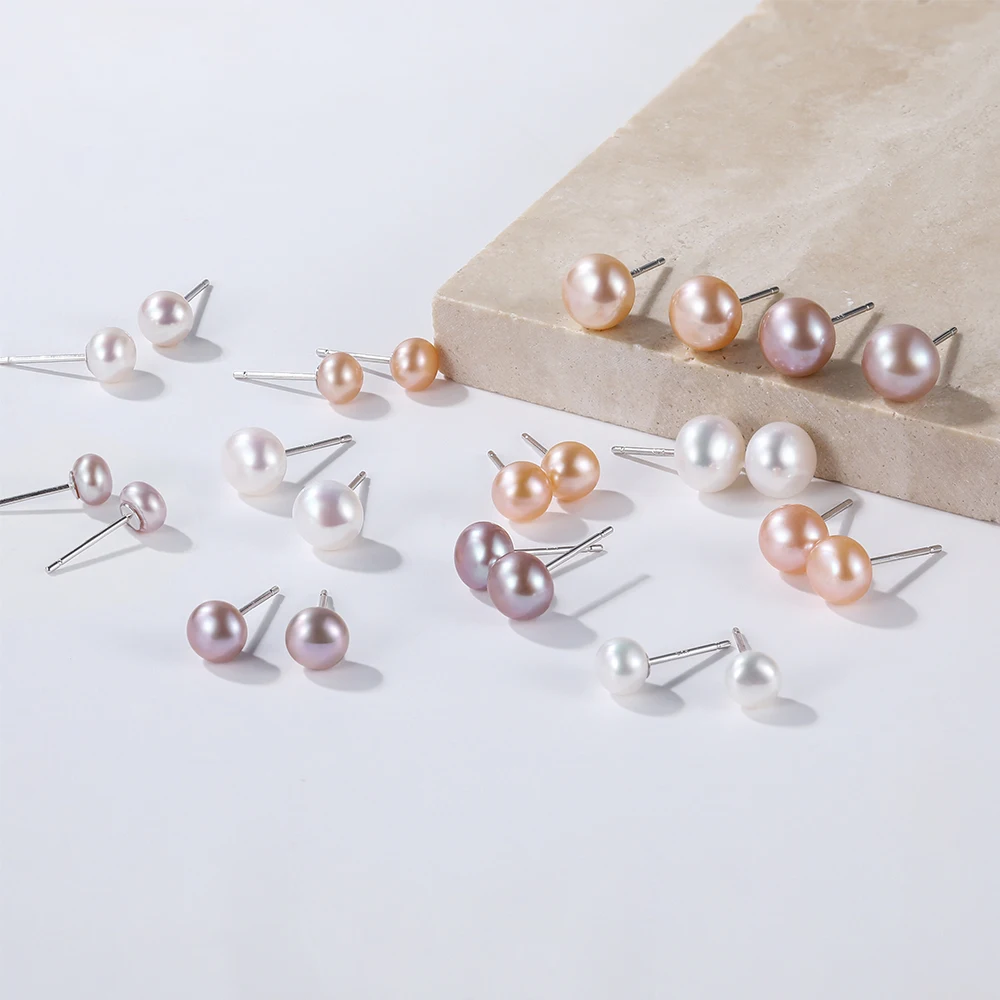 Seulement Natural Freshwater Pearls Stud Earrings for Women 925 Sterling Silver Simple Colorful Handpicked Pearl Earring Jewelry