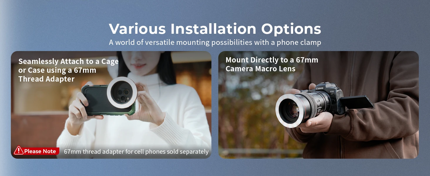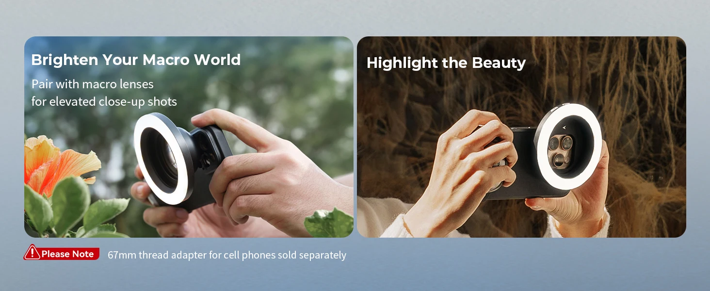 2.Compatible with the 67mm universal threaded ecosystem, including phone cases, phone cages, and macro camera lenses, offering versatile applications