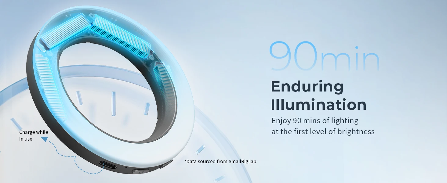 Equipped with a 440mAh polymer lithium battery, this product supports USB-C charging and offers over 30 minutes of continuous use at full power. It serves as a one-stop solution that caters to hobbyist photographers, bloggers, and live streamers by efficiently addressing concerns related to lighting effects, portability, and battery life.