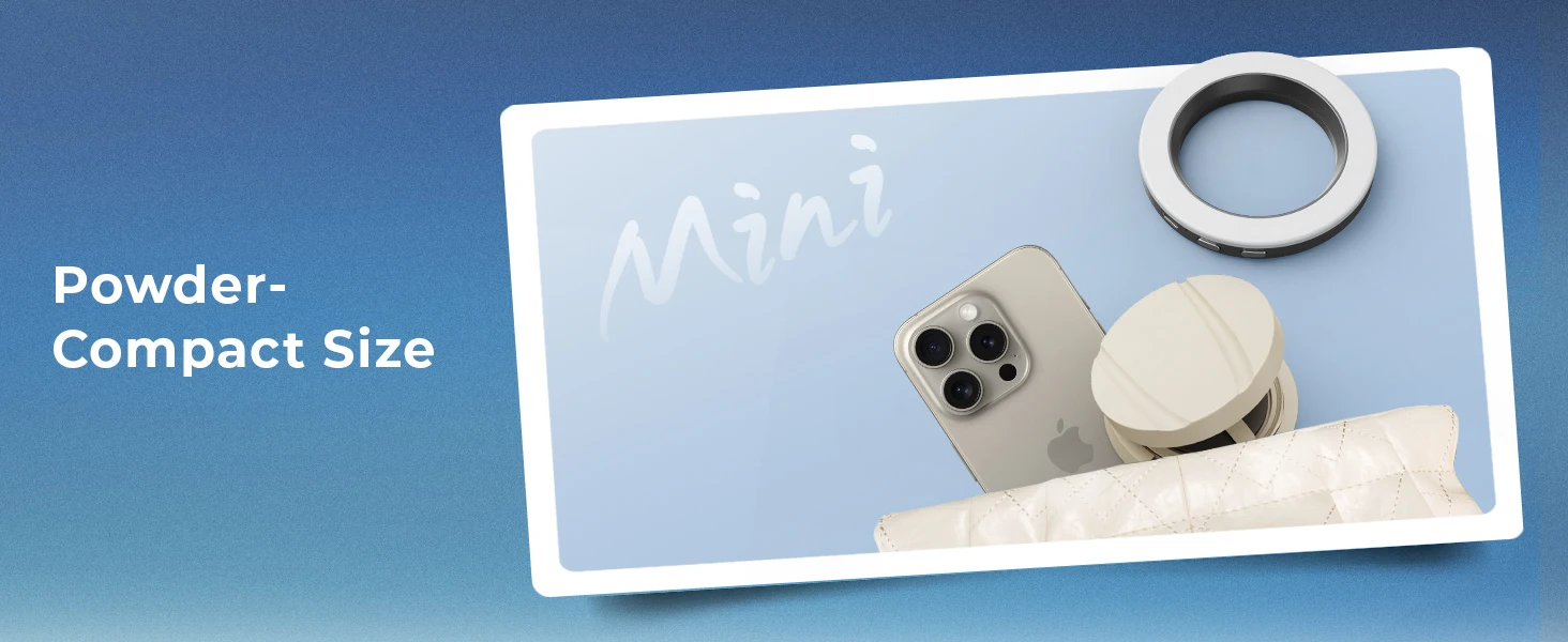 3.The ring light is roughly the size of a powder box, ensuring effortlessly portable