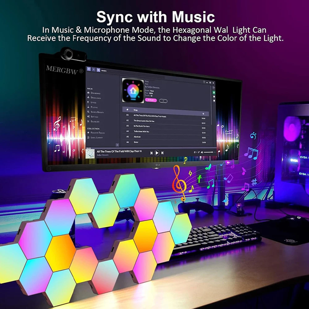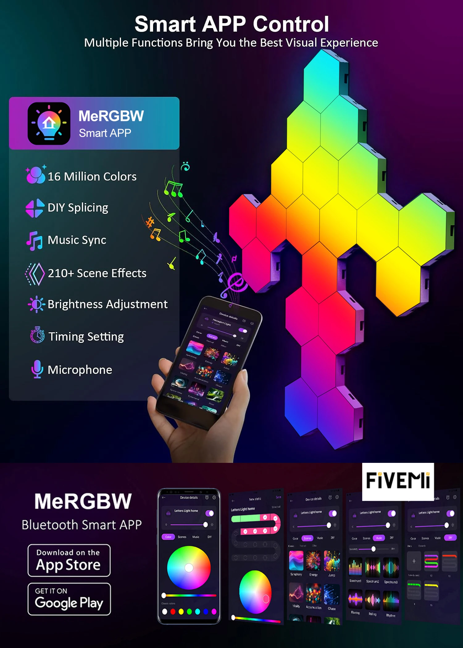 Visualize Your Songs: kinds of Music Sync Modes make every lights panels dance to the rhythm. Turn your favorite gaming songs into a symphony of flowing light . Enjoy the fantastic moment with FIVEMI hexagon lights.