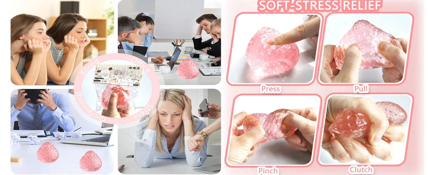 Strawberry Squishy Stress Toys Taba Soft Pinching Squeeze Fidget Fruit Kit for Anxiety Relief Sensory Reliever for Adults Kids