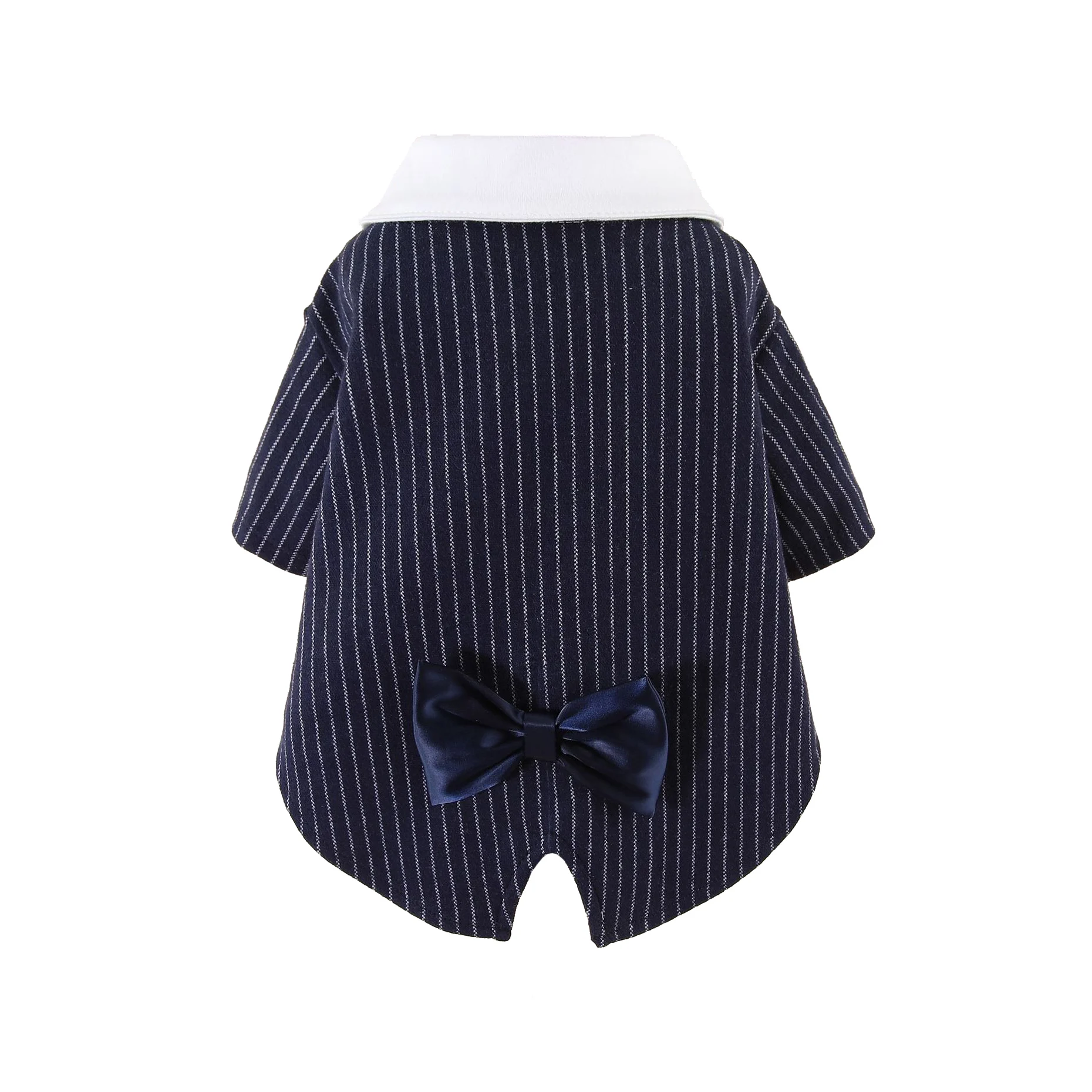 Dog Costume, Dog Tuxedo Costume with Bow Tie for Wedding, Pet Tuxedo Suit for Small Medium Dogs, Formal Party Shirt Halloween Birthday Cosplay Elegant Dog Apparel Navy Blue Gray
