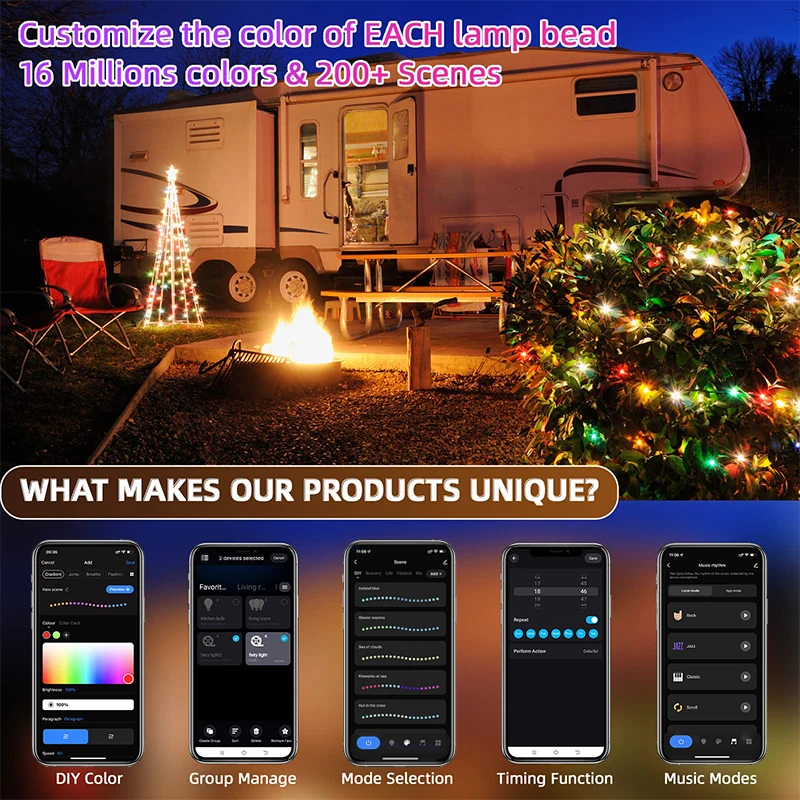 Special design by adding IC,this LED strings can reaches variety of different color chasing effect like recurrently chasing,skipping,dancing,twinkling on the strip etc.