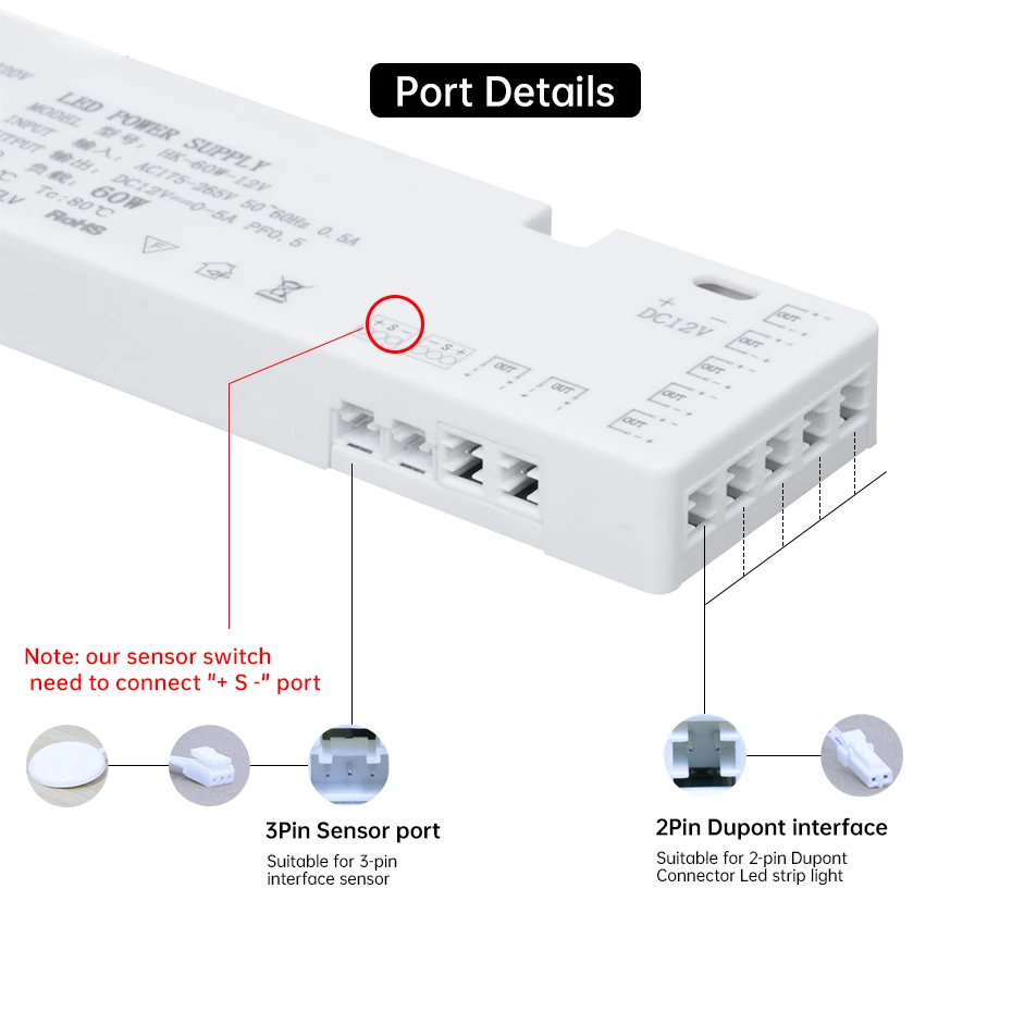 Our sensor switch Must connect to the wiring port " + S – "