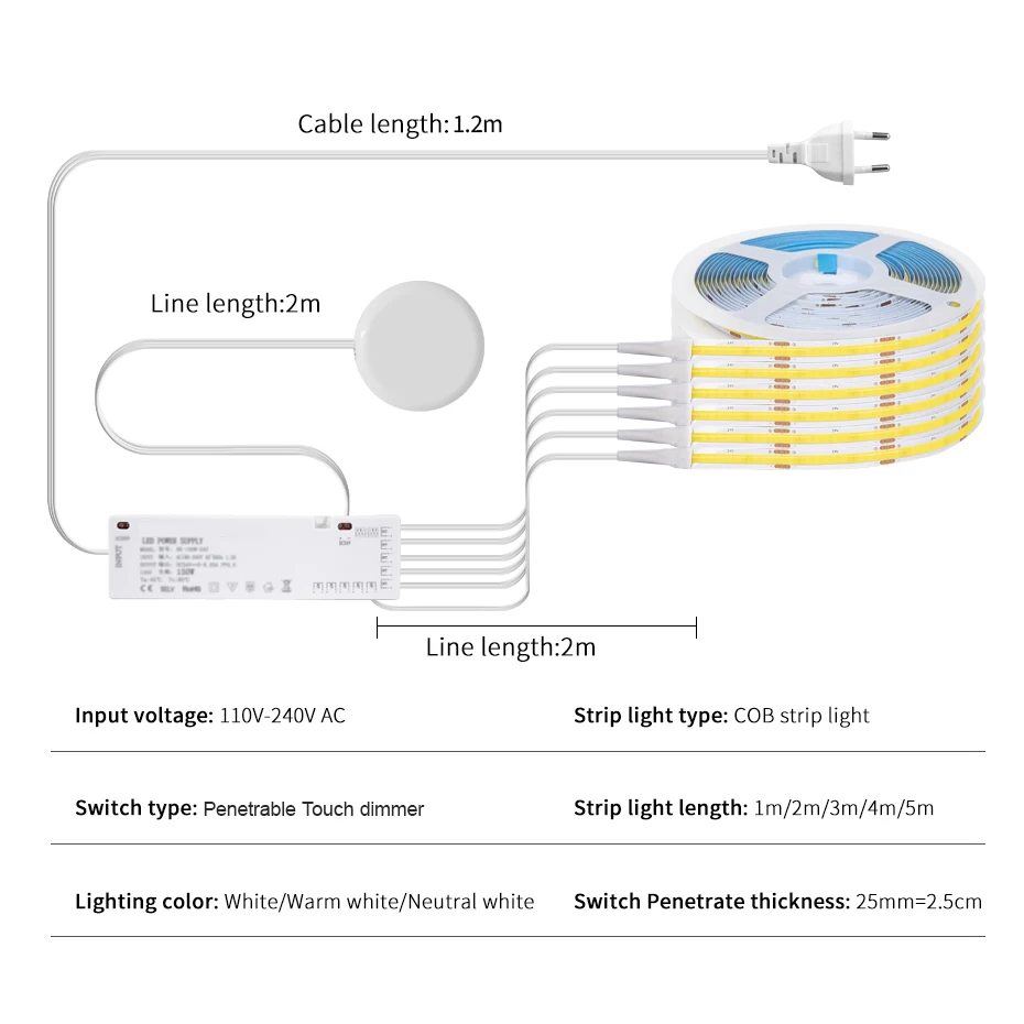 The COB strip light can not directly connect to AC 110V/220V, must add a DC 12V transformer!