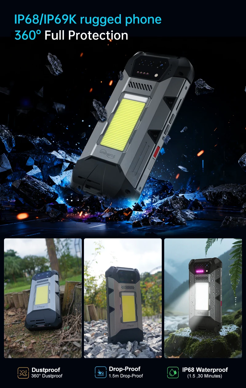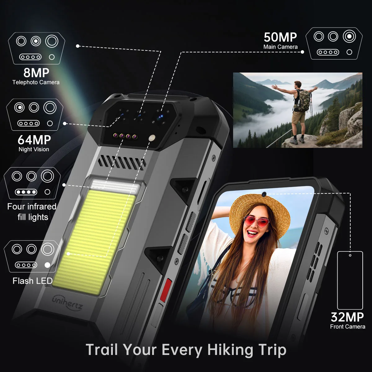 Unihertz 8849 Hike Smartphone Android 14 With 200 Meter Flashlight LED 23800mAh 24GB 512GB Dual Speaker Helio G200 IP68/IP69K 4G