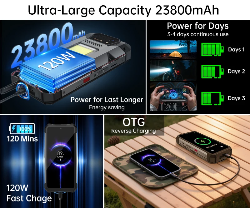23800mAh large battery; 120W fast charging;supports reverse charging; Ultra energy-saving