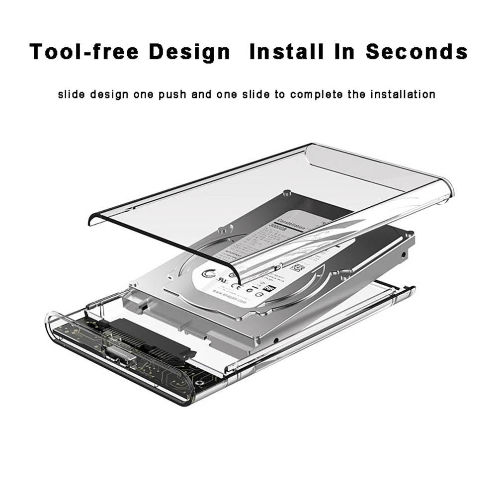 USB 3.1 Type C HDD Enclosure 2.5 Inch SATA SSD External Hard Drive Case With 5Gbps Transfer Speed Clear Harddisk Boxs Tool-Free