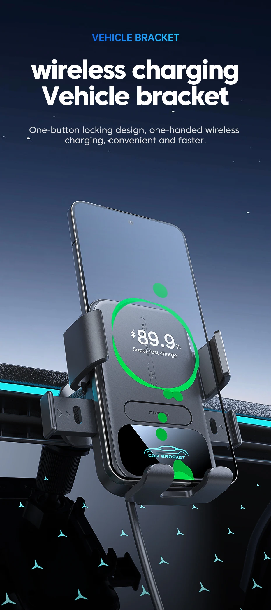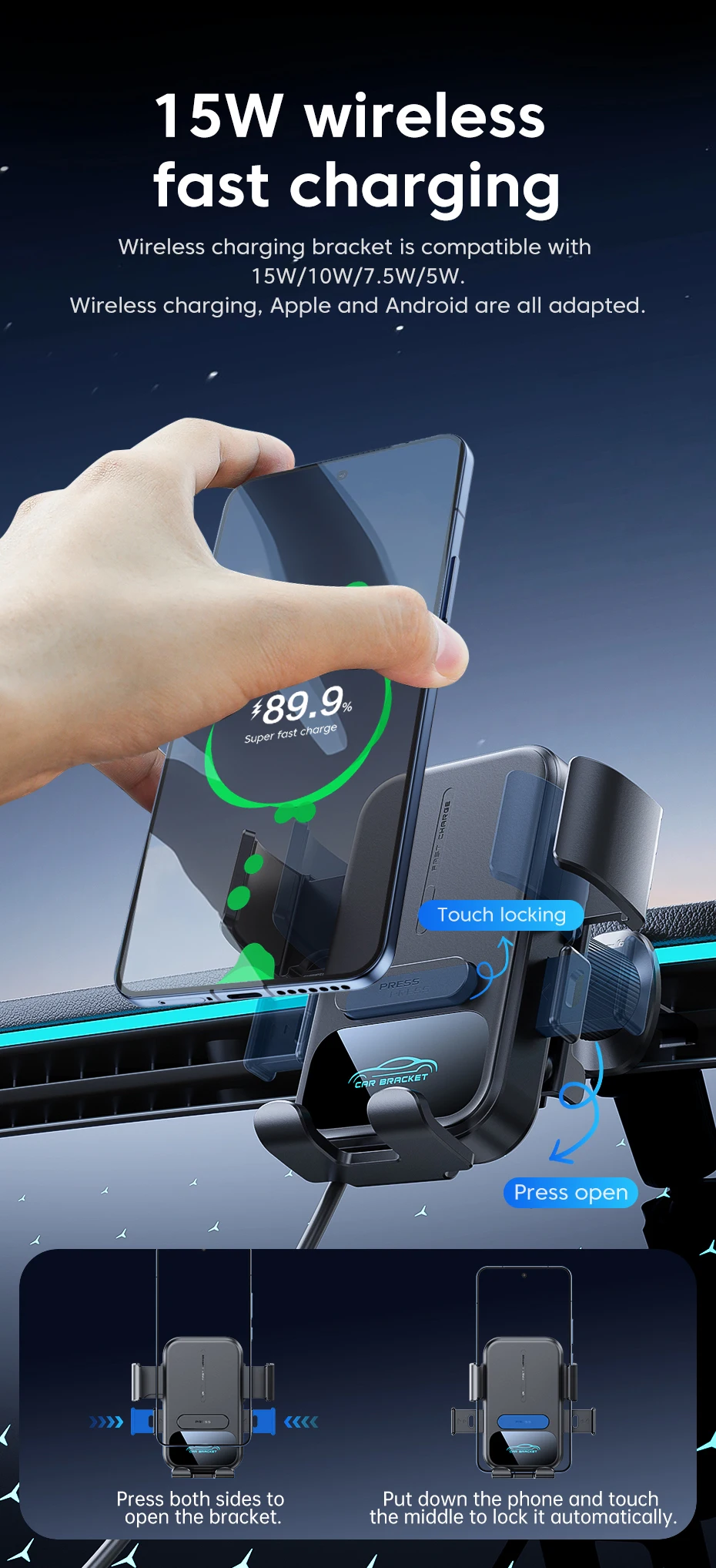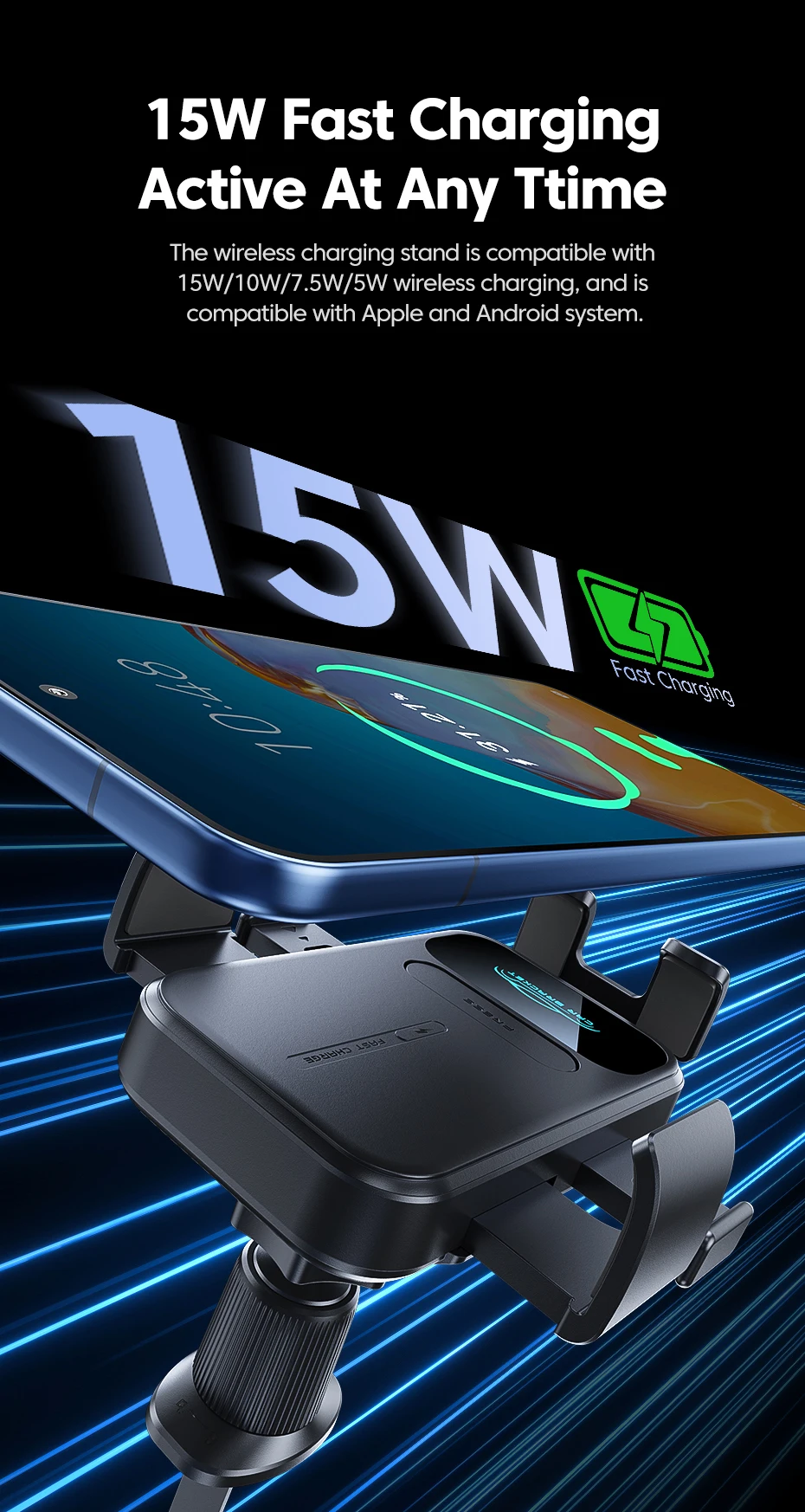 UYUXIO Air Vent Car Mount Phone Holder 15W Fast Charging Wireless Car Charger Manual Clamping for Samsung Android Phones iPhone