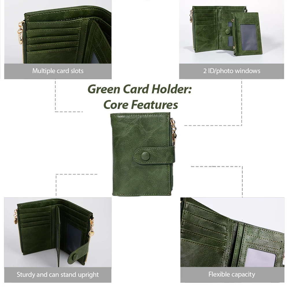 • Interior: Interior Slot Pocket,Interior Zipper Pocket,Interior Compartment,Zipper Poucht,Coin Pocket,Note Compartment,Photo Holder,Card Holder