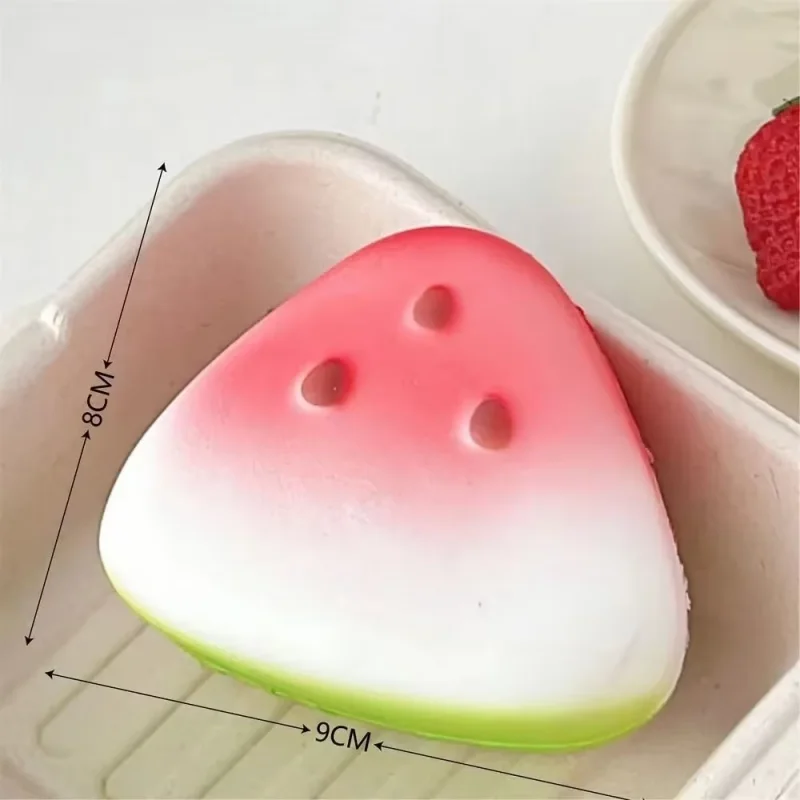 Crafted from durable latex, this squishy watermelon fidget toy ensures long-lasting use and repeated squeezing.
