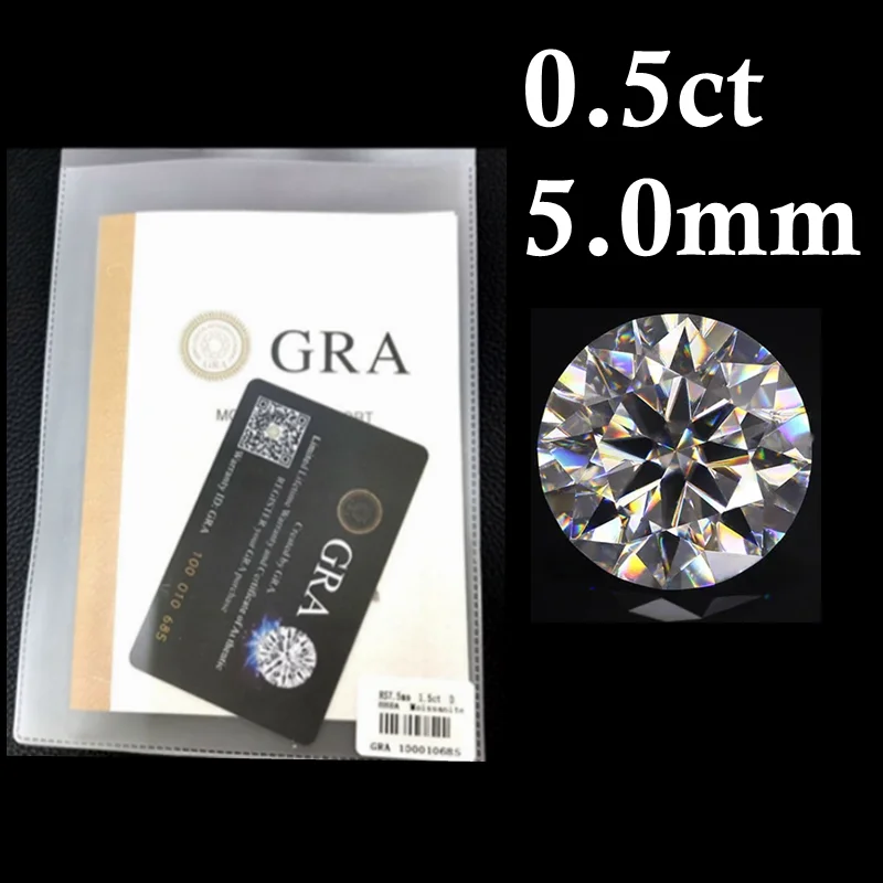 0.5ct 5.0mm Certified Small Moissanite Diamond Brilliant Cut Loose Moissanite Stones Gems For Jewelry With Report