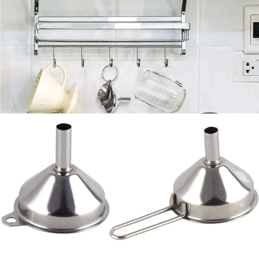 Wide Mouth Stainless Steel Funnel Spice Cooking Oil Filter Kitchen Tool Strainer with Handle Oil Spill Filter Funnel