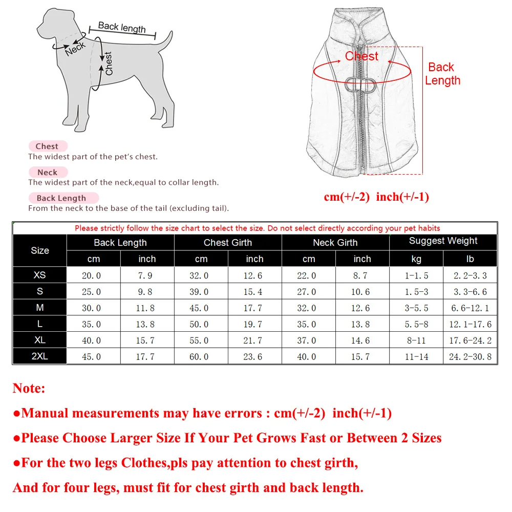 2XL:Back Length:45cm/17.7inch;Chest Girth:60cm/23.6inch;Neck Girth:40.0m/15.7Inch;Suggest Weight:11-14kg/24.2-30.8lb