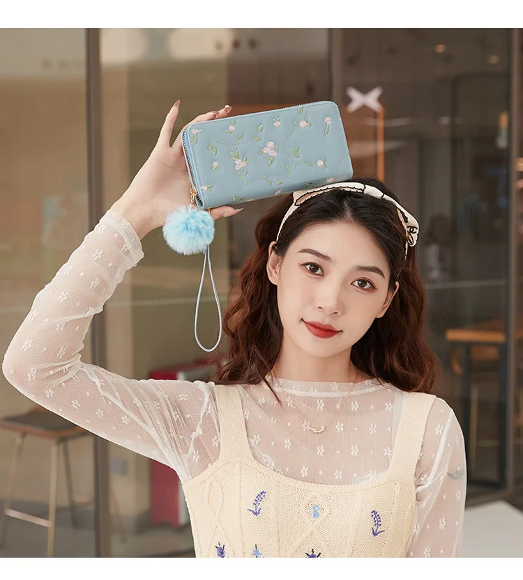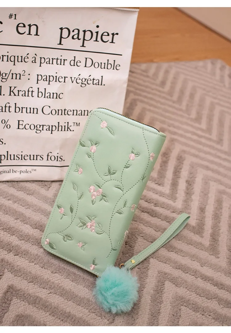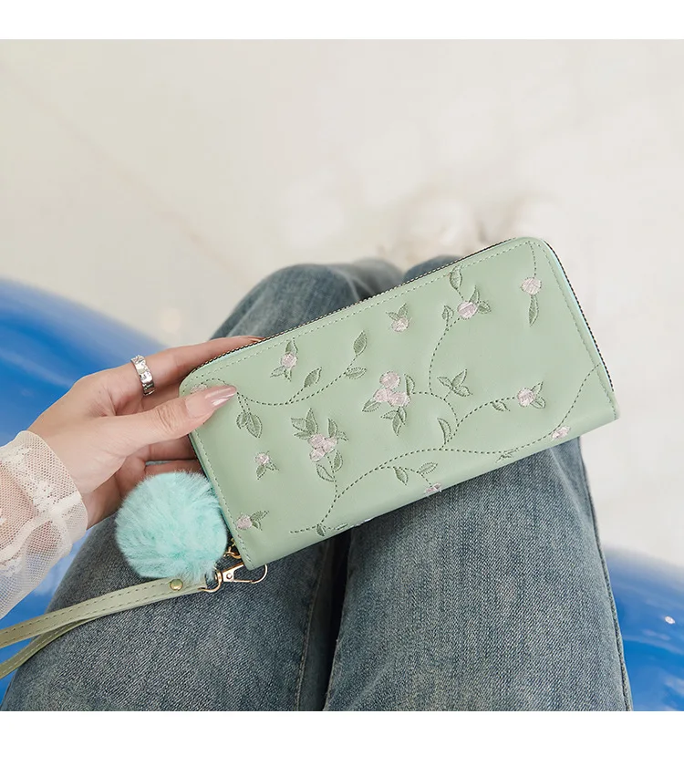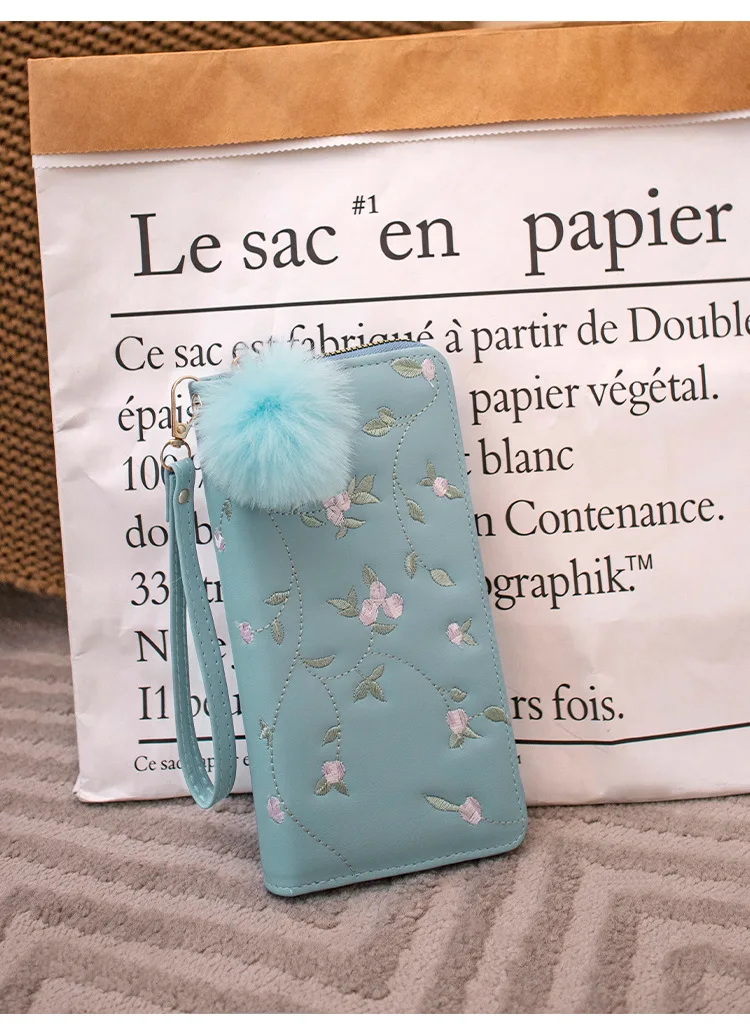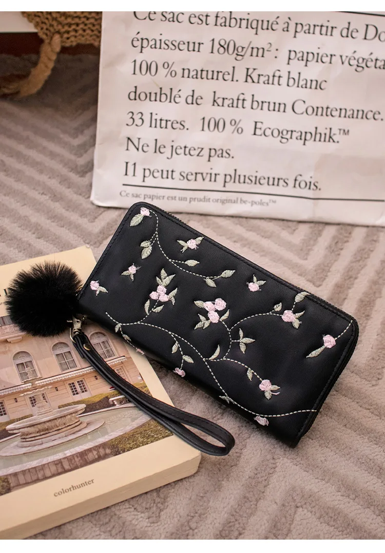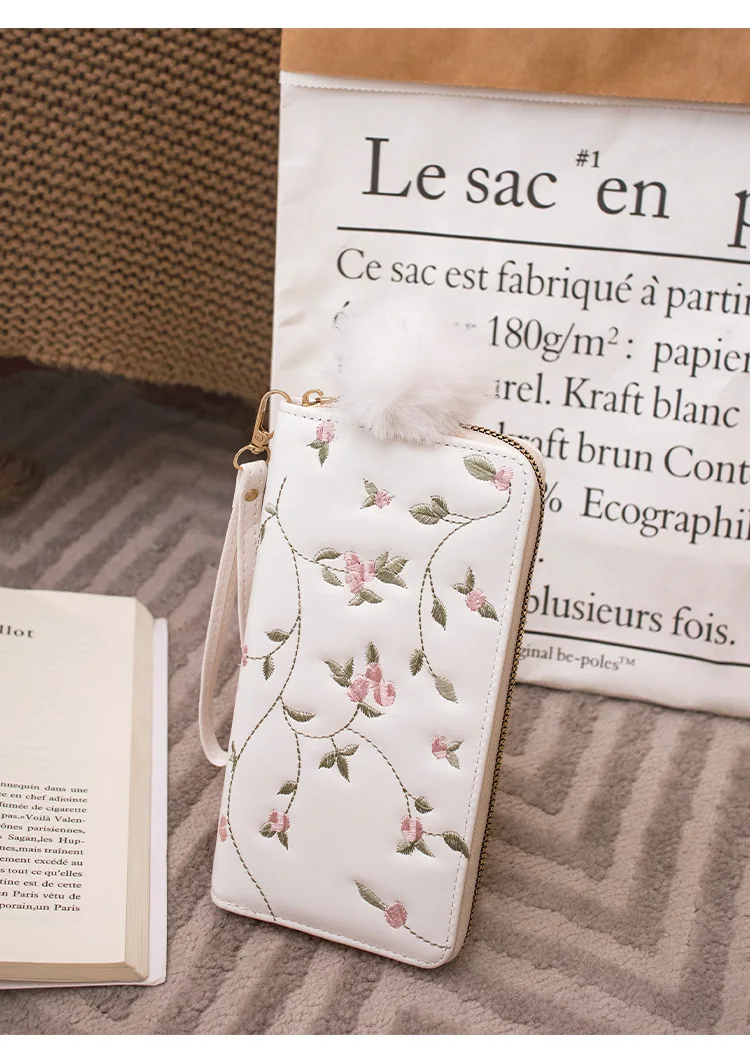 Women’s Embroidered Long Wallet PU Leather Flower Pattern Ladies Coin Purse Card Holders Foldable Zipper Money Bag Mom Wallets