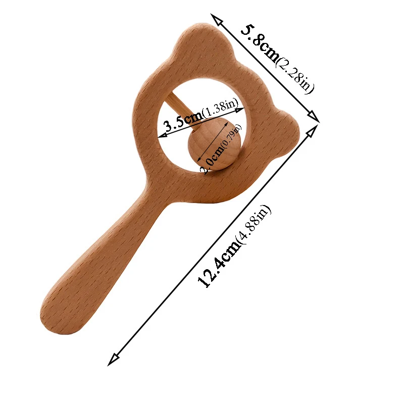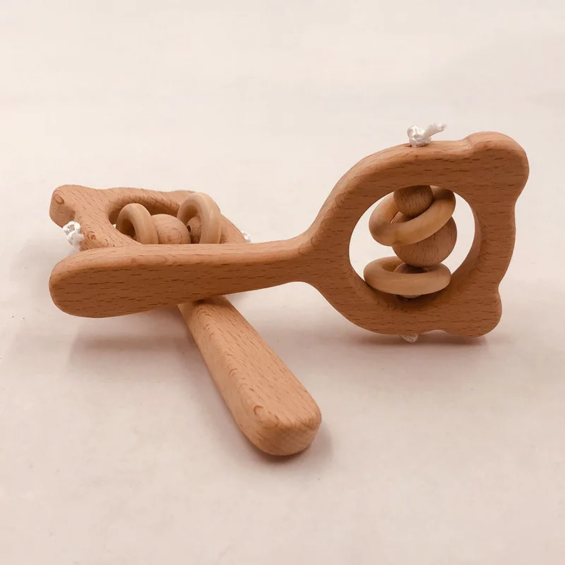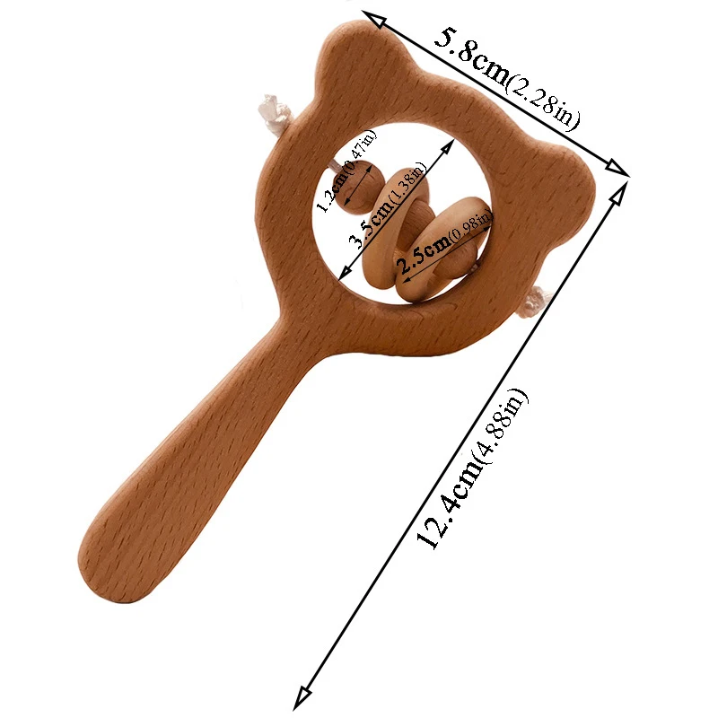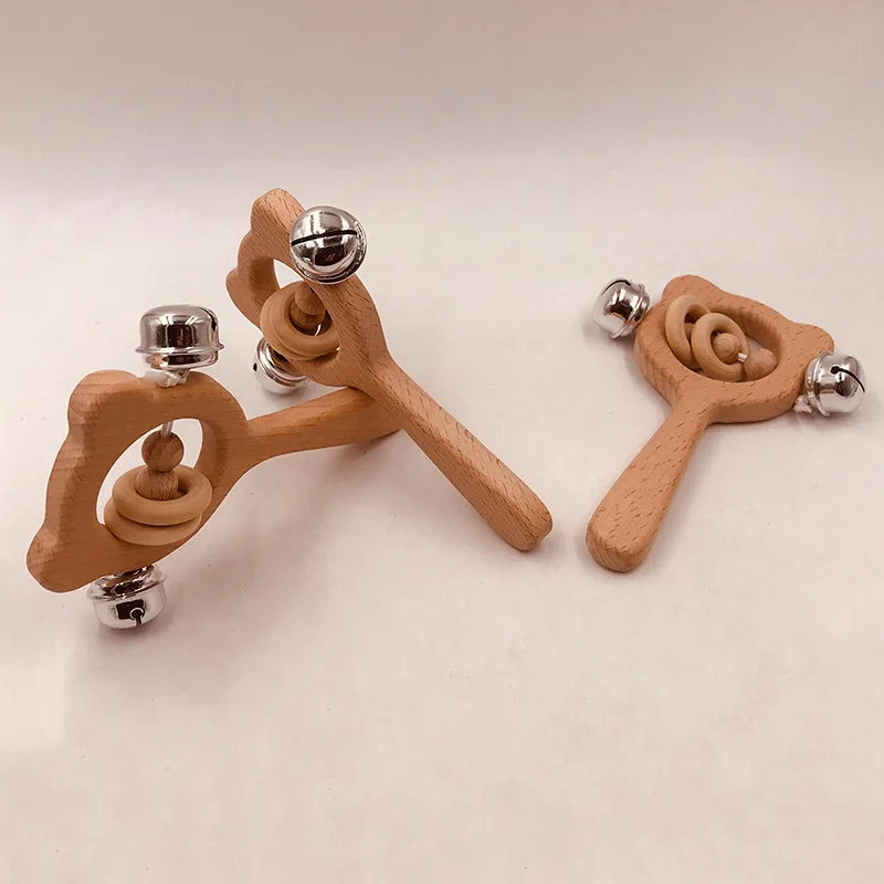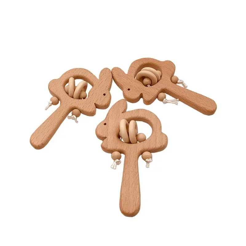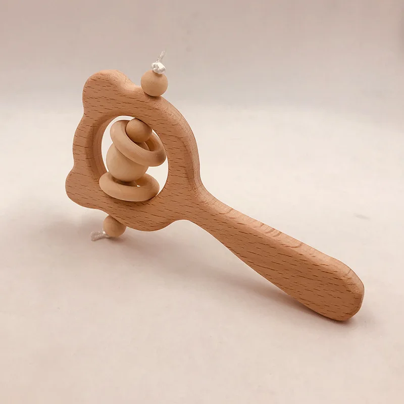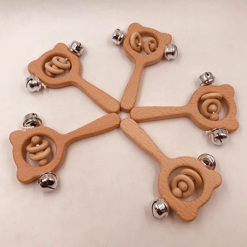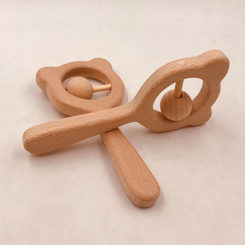Wooden Rattle Beech Bear Hand Teething Wooden Ring Baby Rattles Play Gym Montessori Interactive Toys for Kids Educational Toys