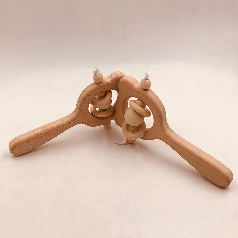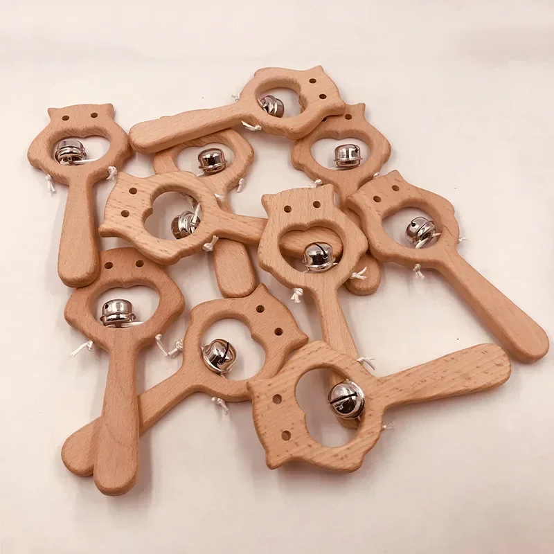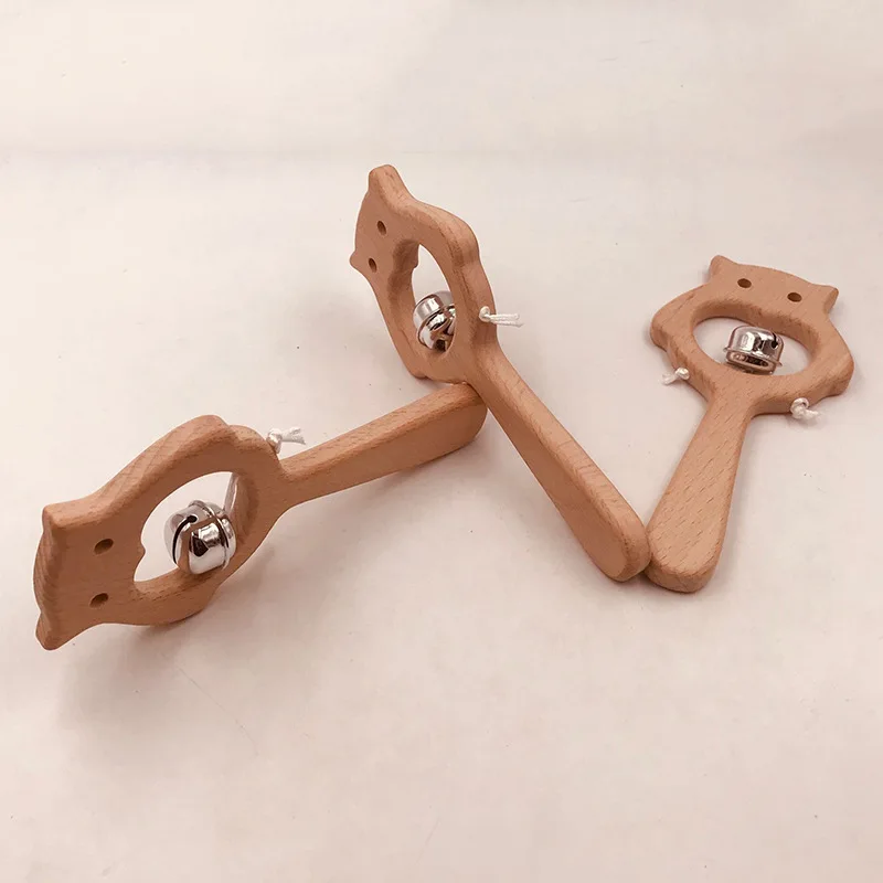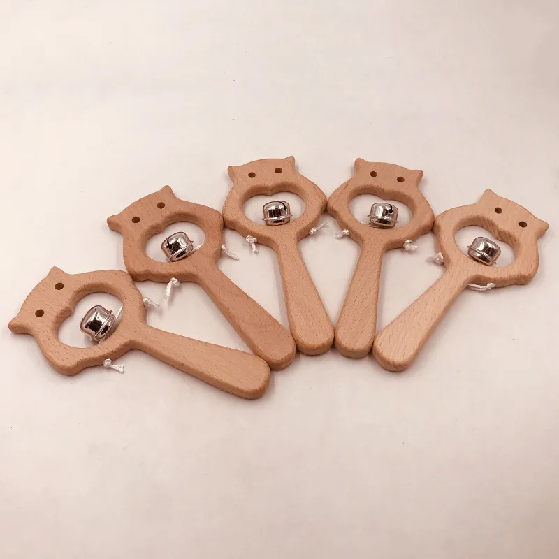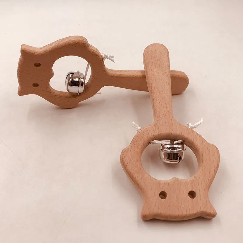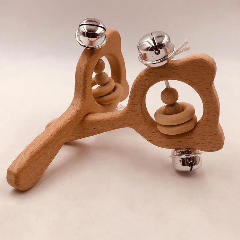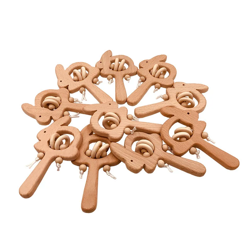 Wooden Rattle Beech Bear Hand Teething Wooden Ring Baby Rattles Play Gym Montessori Interactive Toys for Kids Educational Toys