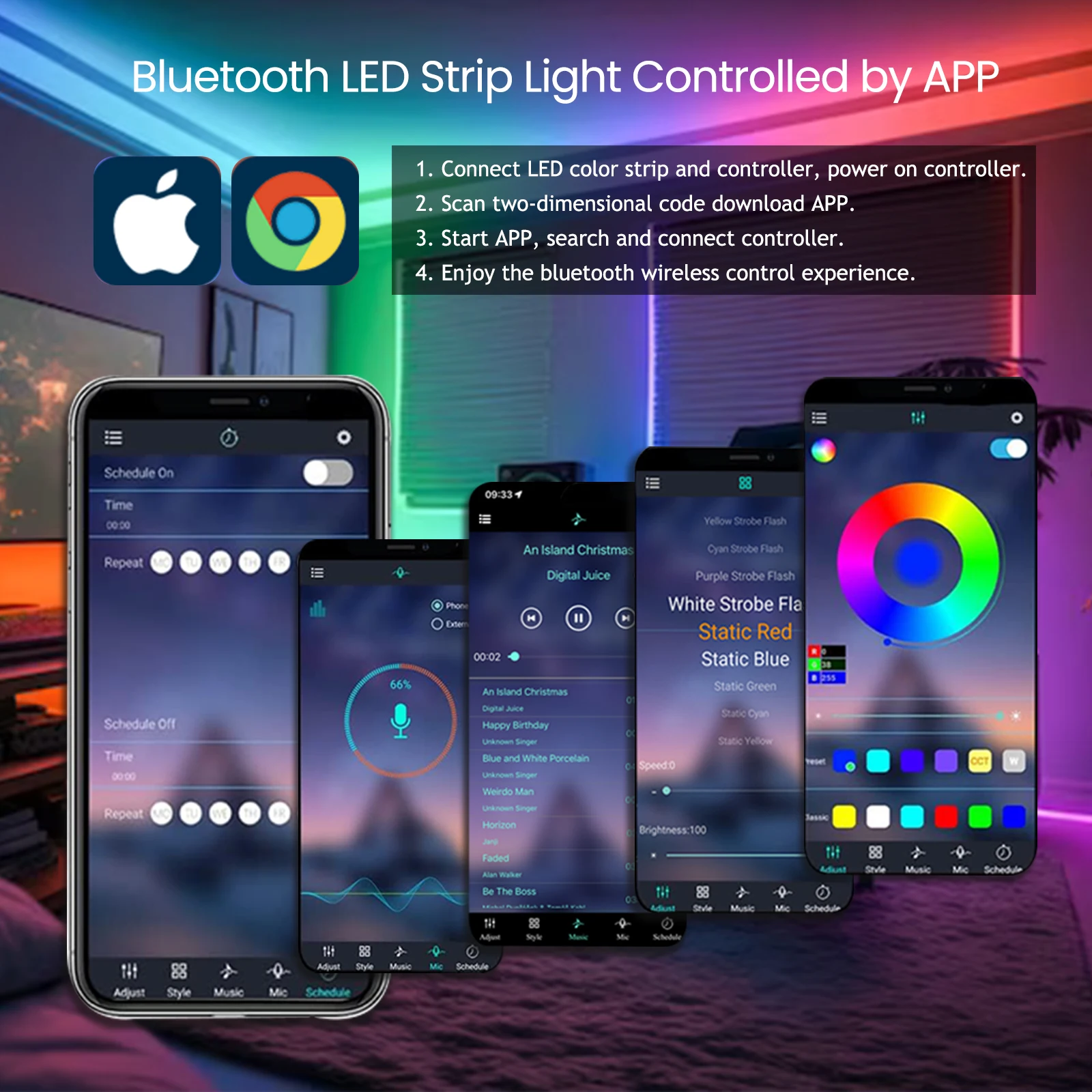 Bluetooth LED Strip Light Controlled by APP