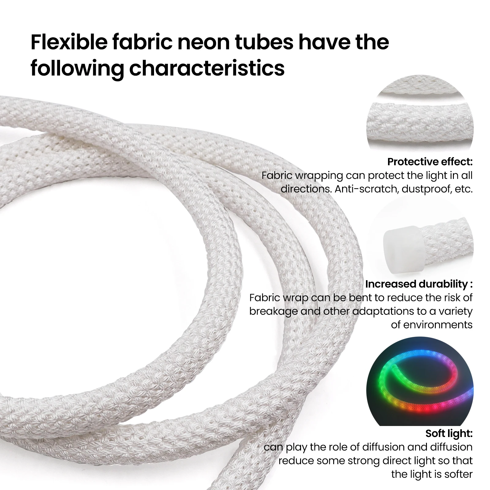 Flexible fabric neon tubes have the following characteristics