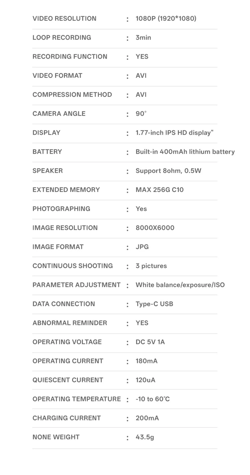 2.Built-in 400mAh battery – Provides approximately 80 minutes of recording time.