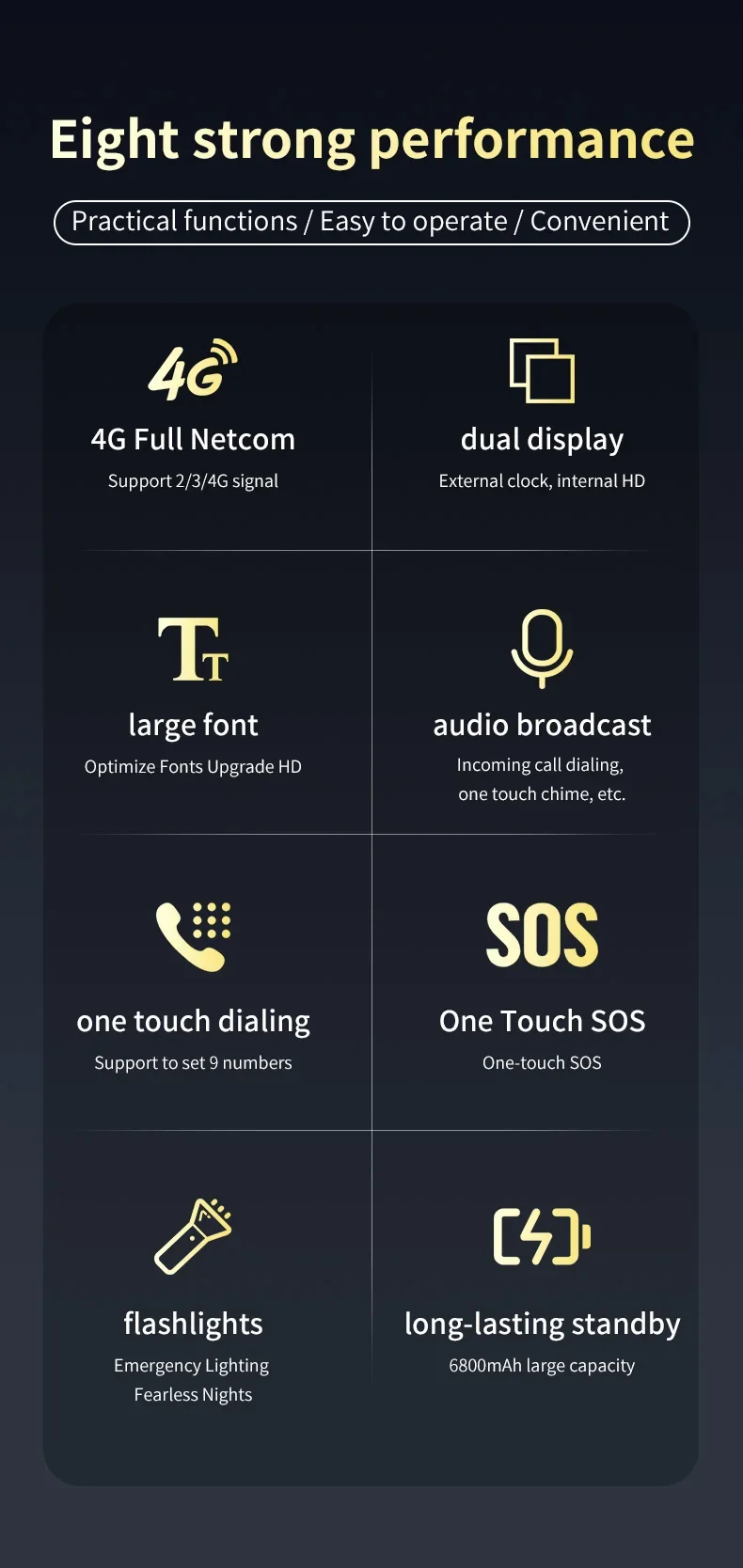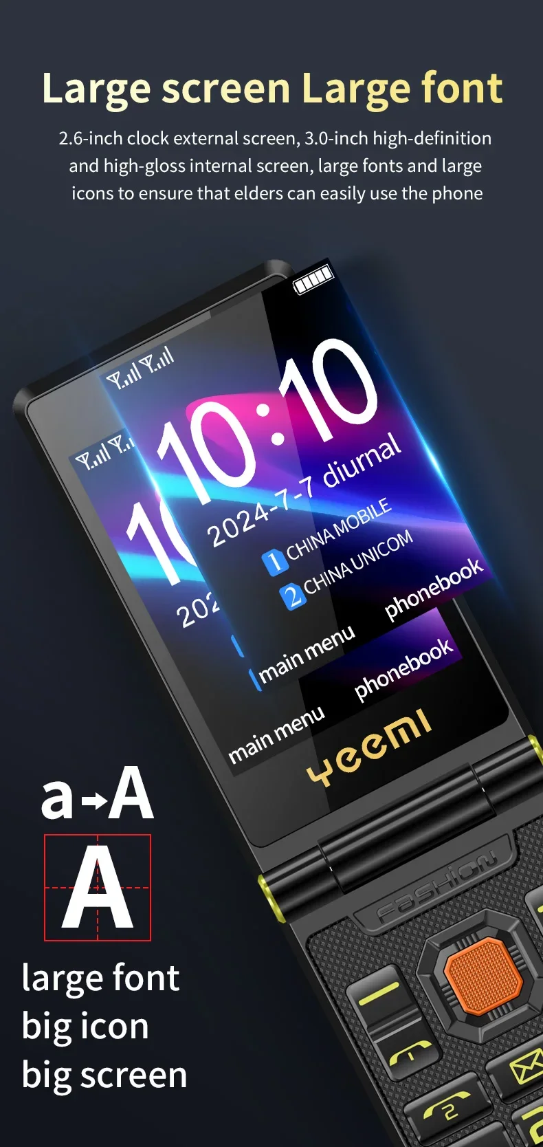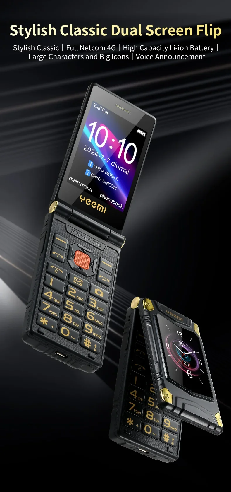 YeeMI M7+ 4G Rugged Feature Phone Dual SIM Dual Screen Large Fonts For Old Man 6800mAh Cellphone SOS Russian Hebrew keyboard