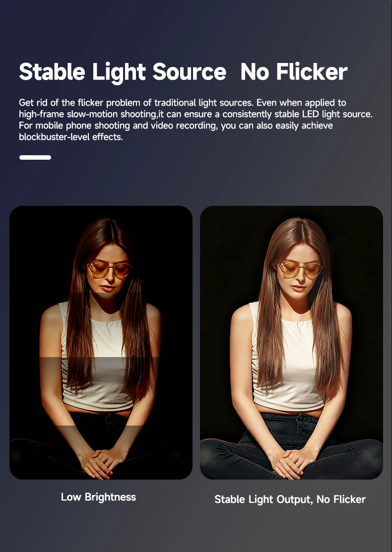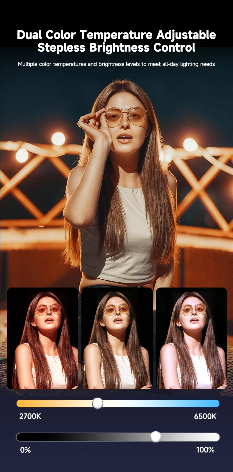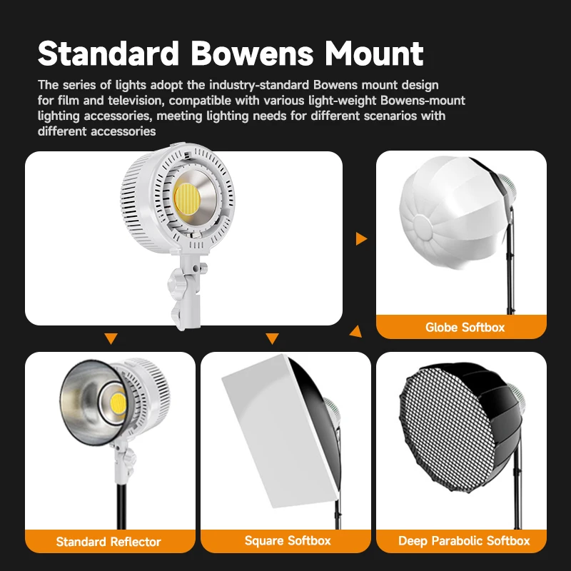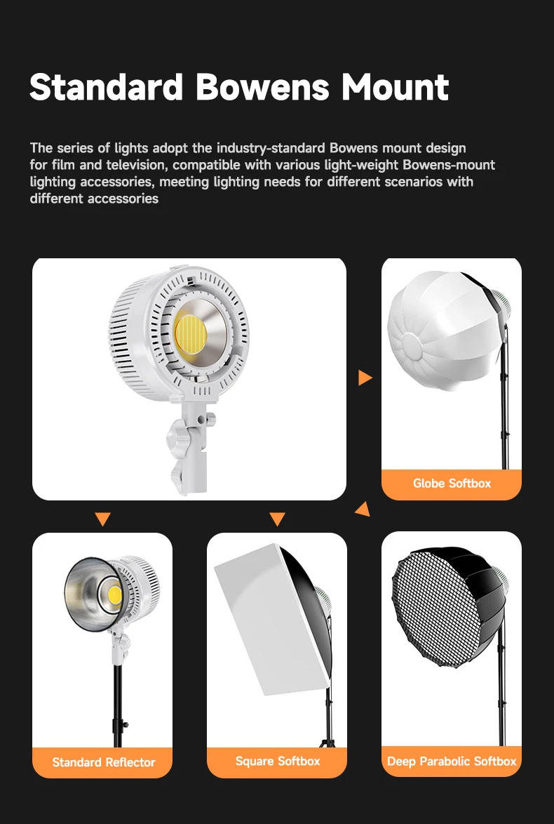 The bi-color range allows for seamless color temperature adjustment, ideal for various shooting environments and styles.